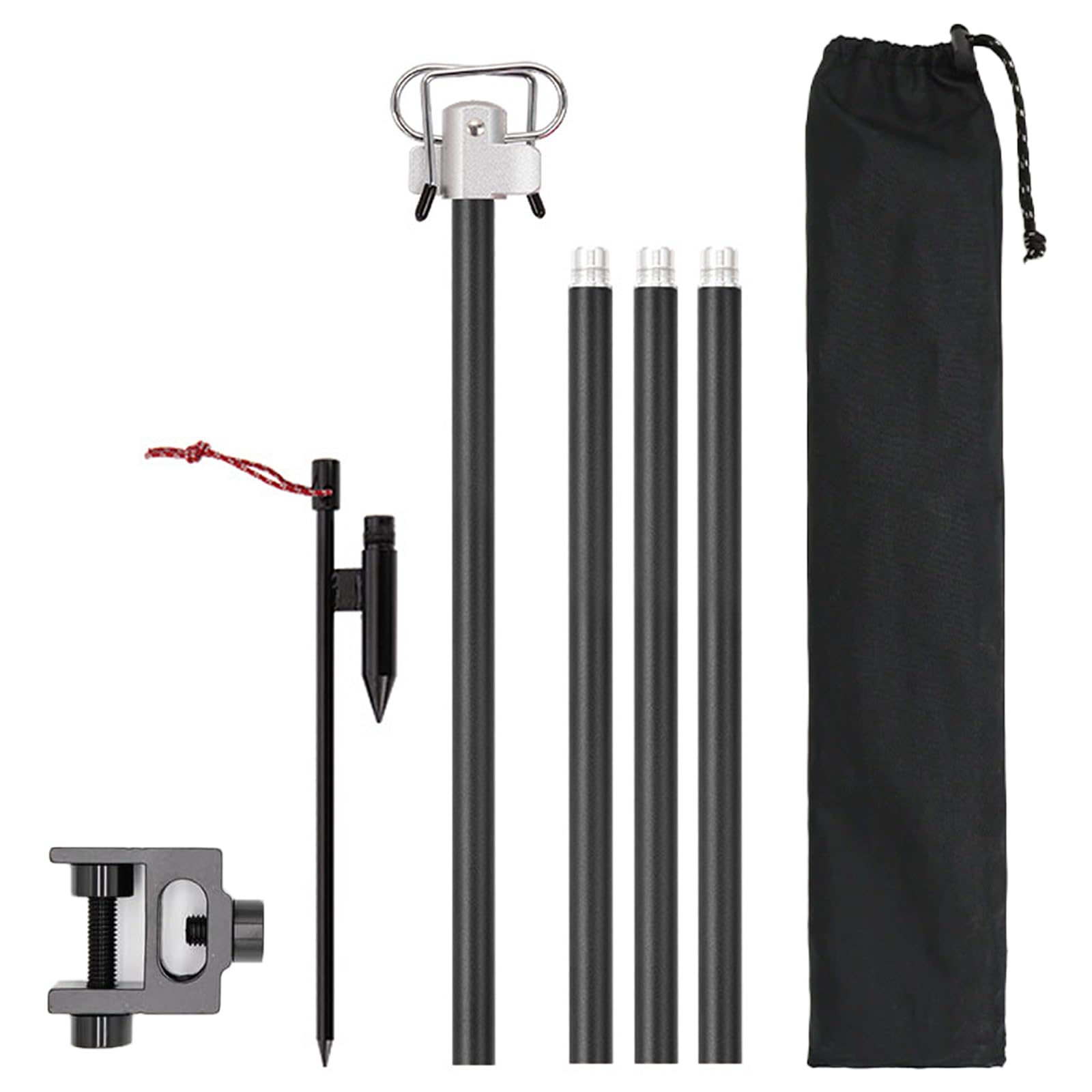HUIPIN ランタンスタンド ランタンポール 強いアルミ合金製 4節/高さ調整53~149cm ランタンハンガー コンパクト収納 組立簡単 テーブル/地面両用 収納袋付き (ブラック)