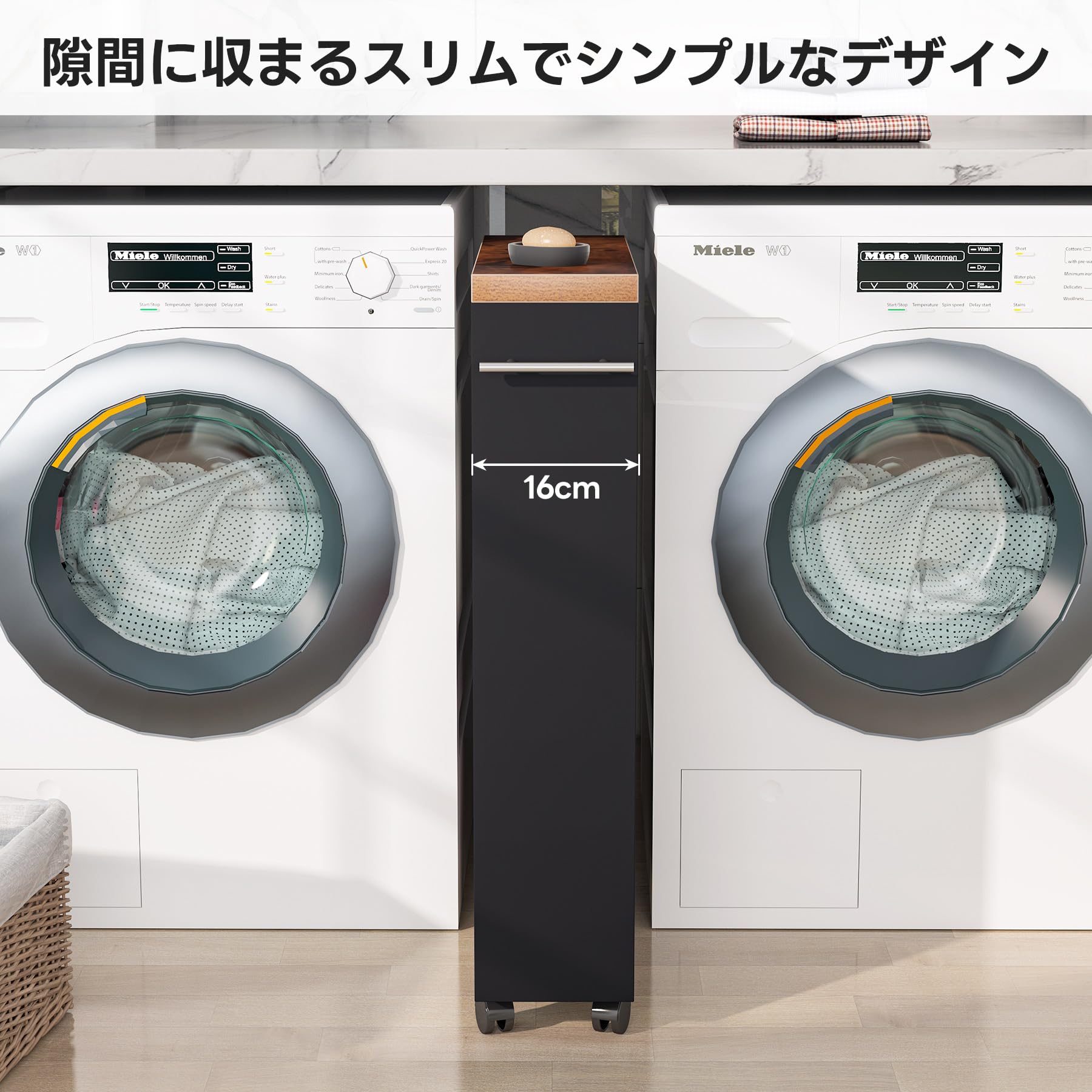 Tribesigns キッチンワゴン スリム収納カート ハンドル付き 隙間収納 木製スリムワゴン ホワイト/ブラック 幅16cm キャスター付き (ブラック)