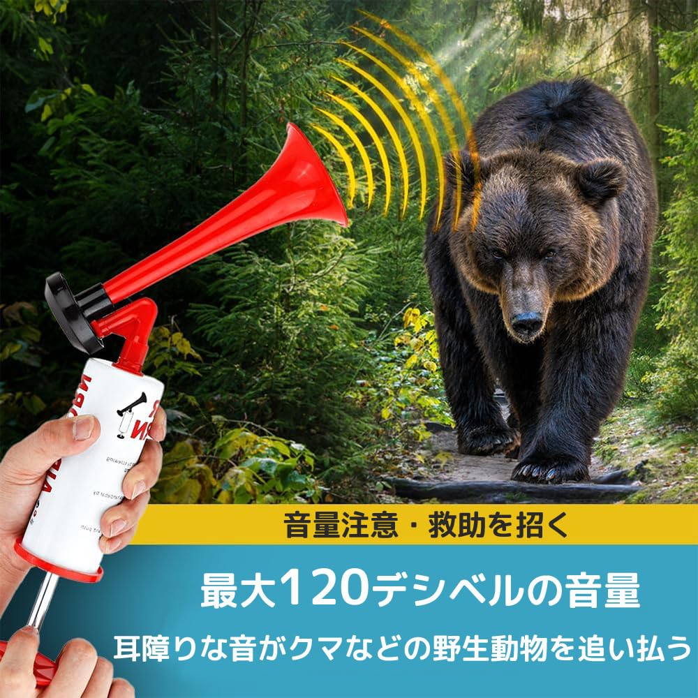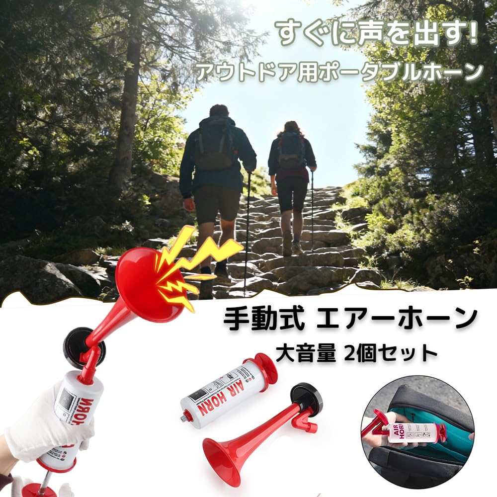 LIKENNY 手動式 エアーホーン 2個セット 大音量 防犯 山登り スポーツ観戦 応援 パーティー くまよけ道具 熊対策グッズ