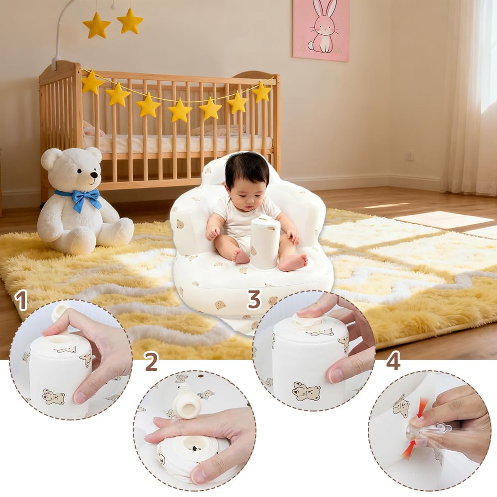 LIKENNY ベビーチェア 赤ちゃん ベビー用バスチェア 空気式 ふかふか ベビーソファー お座り練習チェア 折りたたみ 水切れ シャワーチェア 食事 お風呂用 収納便利 (かわいいクマ)
