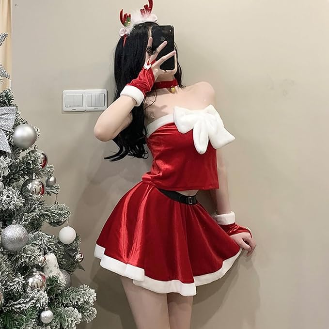 [Formemory] クリスマス コスプレ セット サンタコスチューム クリスマス コスチューム サンタクロースコスプレ 仮装 6点セット 2サイズ ミニスカート セクシー かわいい イベント クリスマス 宴会 文化祭 パーティー 演出 (M)
