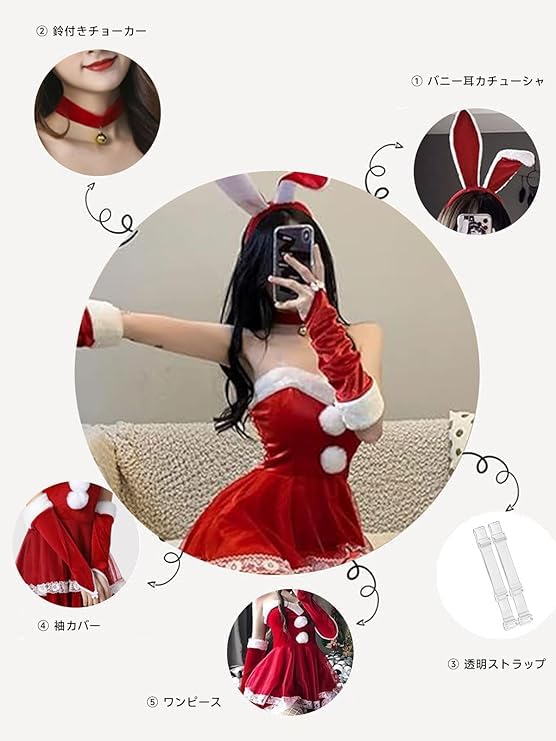 [Formemory] サンタワンピース ウサギ耳付き 仮装 ウサギ コスプレ クリスマス コスプレ レディース セクシー サンタクロース 仮装 サンタ 衣装 クリスマス 仮装 サンタクロース コスプレ 女性 レディース セクシー 可愛い ひざ丈 ケープ ファー 暖かい パーティー サンタ衣装 文化祭 大人用