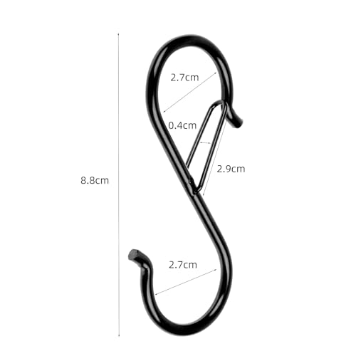 VIPITH S字フック Sじフック 落ちない ステンレス 12個セット 吊り下げフック (8.5cmx12pcs) 耐荷重5kg 汎用フック 錆びにくい キッチン 浴室 お風呂 寝室 黒色