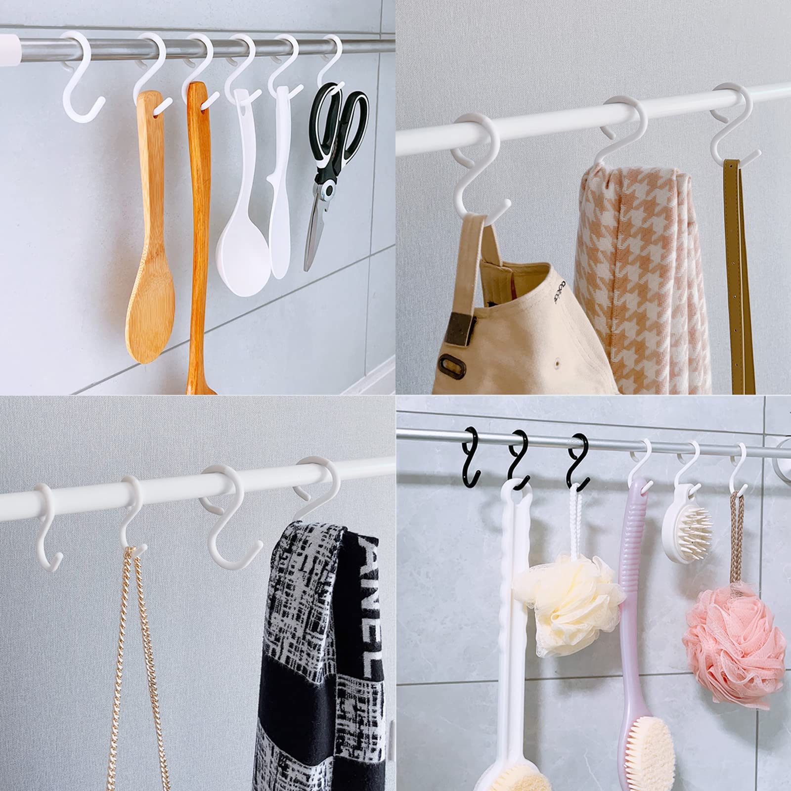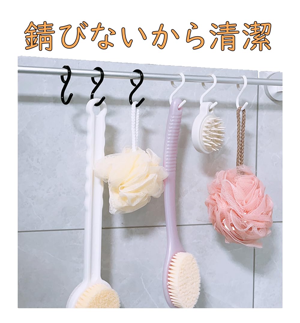 S字フック 錆びない sじフック 落下防止 静音 曲がる 安定性 汎用 大容量 業務用 キッチン 浴室 お風呂 クローゼット収納 (6cm*10pcs)