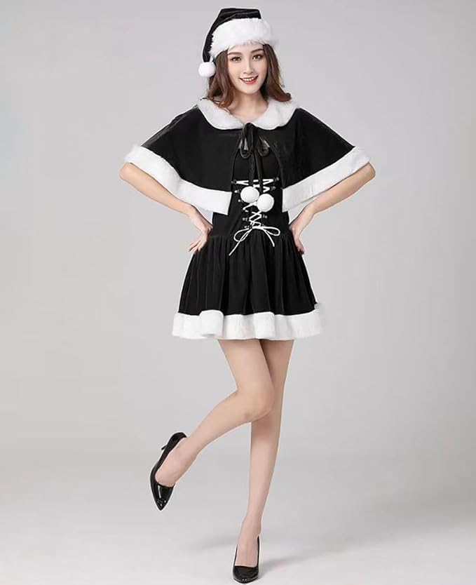 [Formemory] サンタワンピース ウサギ耳付き 仮装 ウサギ コスプレ クリスマス コスプレ レディース セクシー サンタクロース 仮装 サンタ 衣装 クリスマス 仮装 サンタクロース コスプレ 女性 レディース セクシー 可愛い ひざ丈 ケープ ファー 暖かい パーティー サンタ衣装 文化祭 大人用