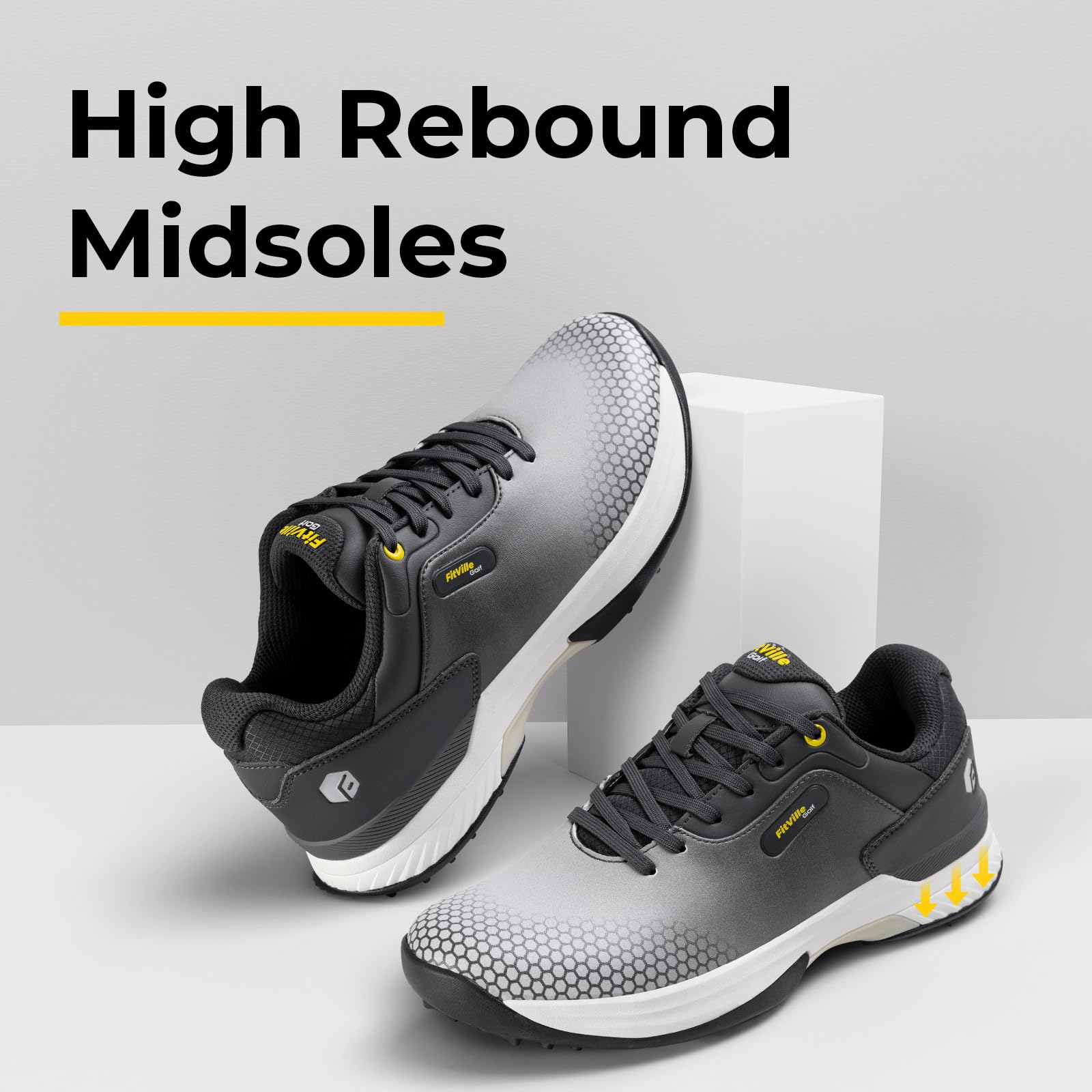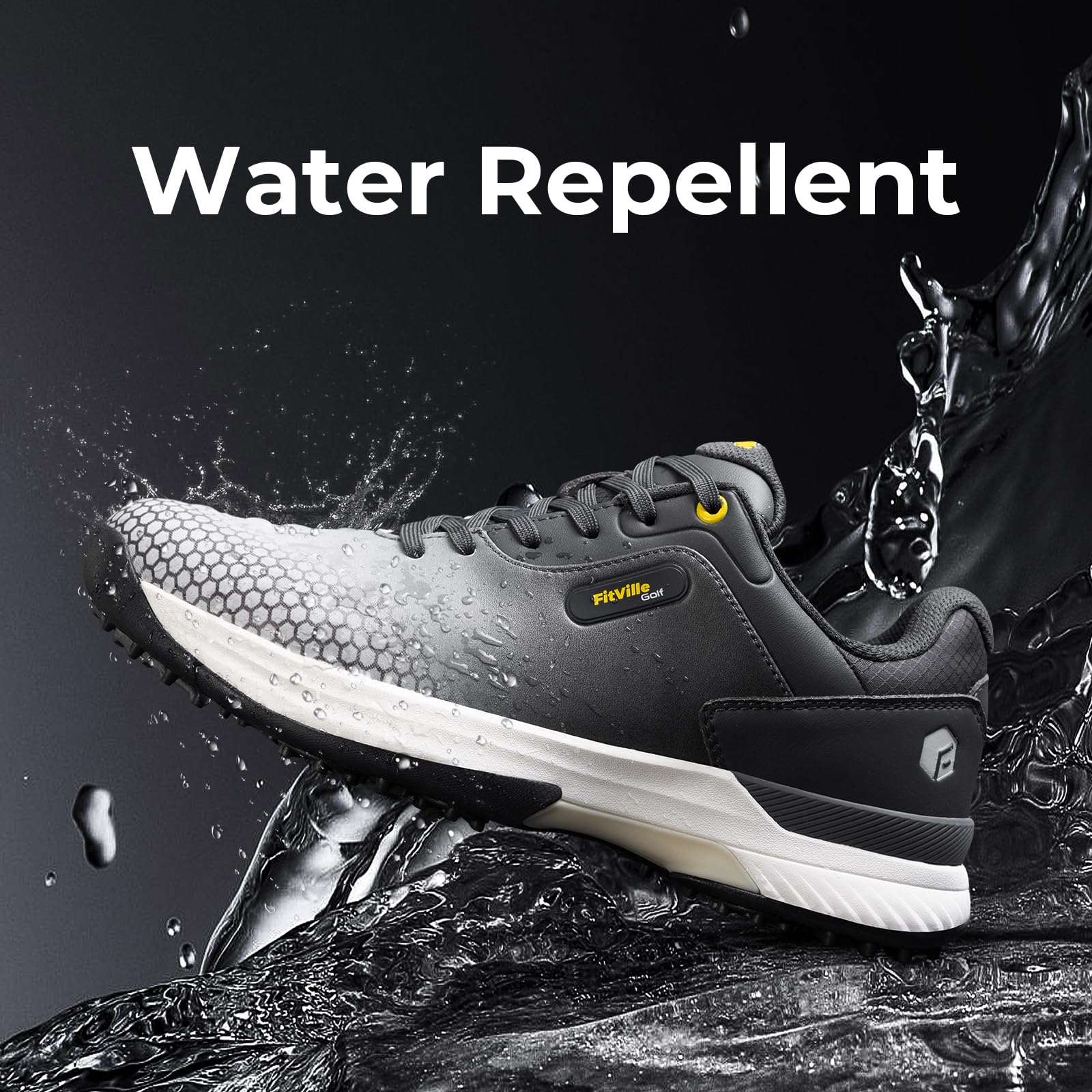 [FitVille] 幅広 ゴルフシューズ メンズ 2E 4E スパイク ゴルフ靴 軽量 撥水 甲高 初心者 練習用 大きいサイズ[Size: 26.5 cm 2E]; [Color: Misty Gray]