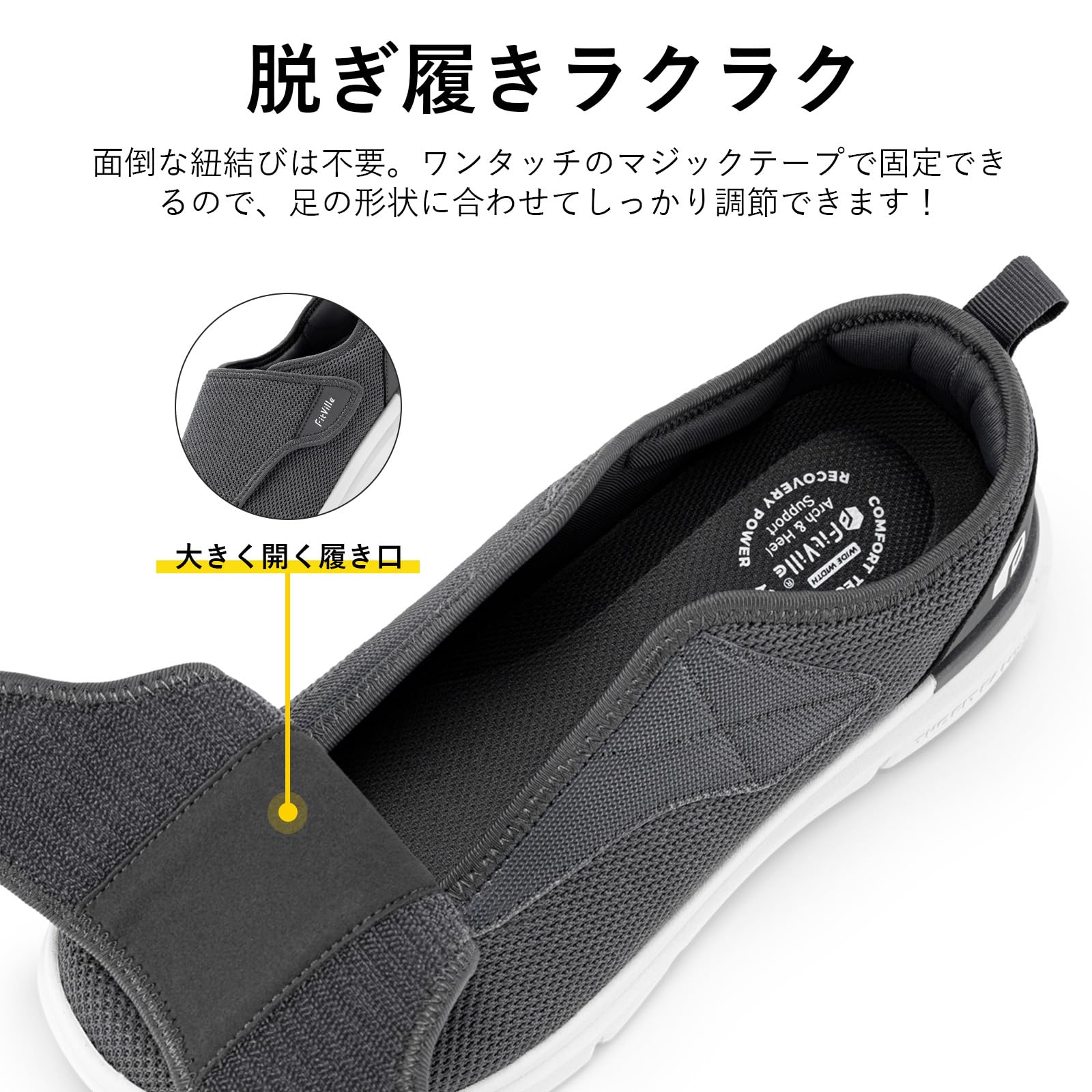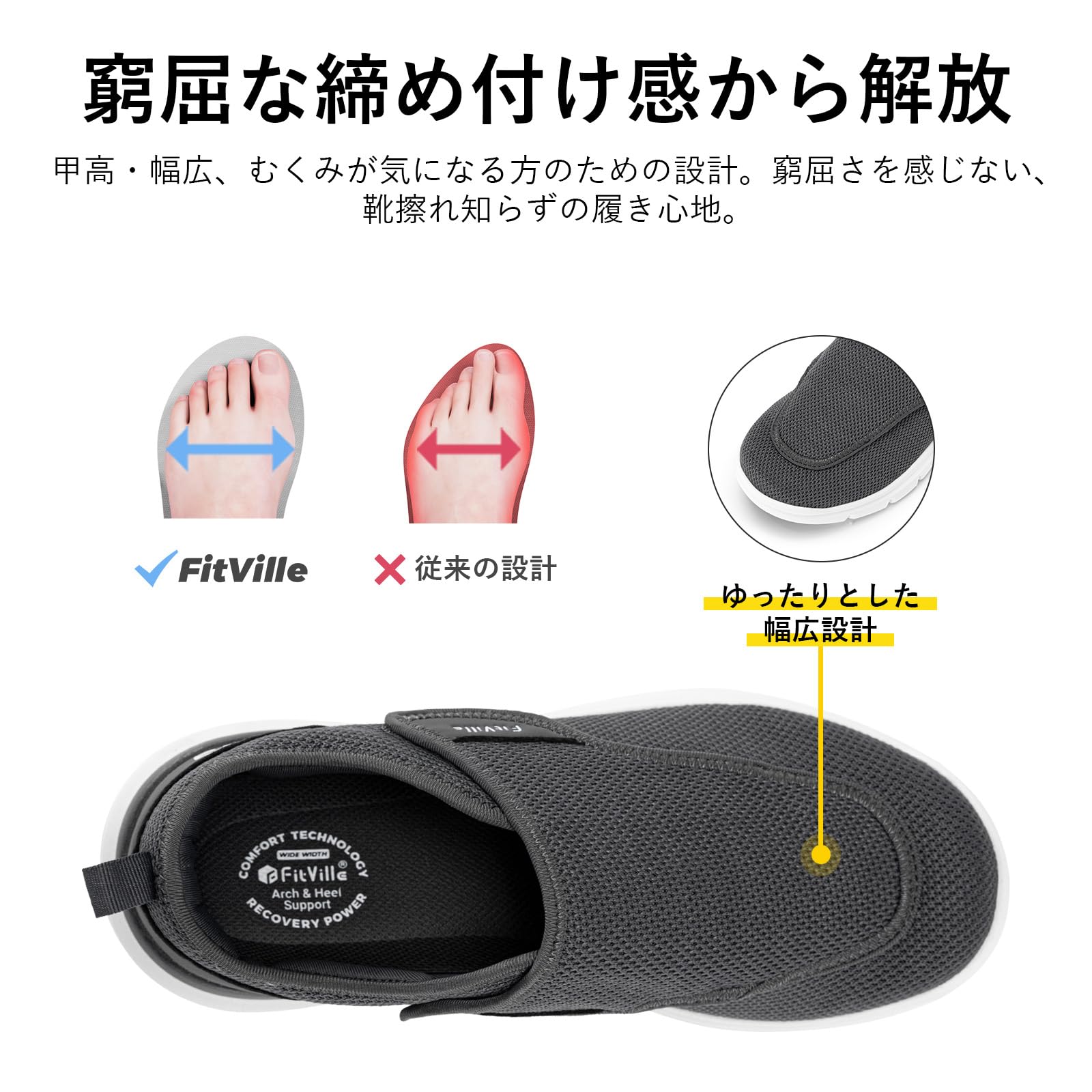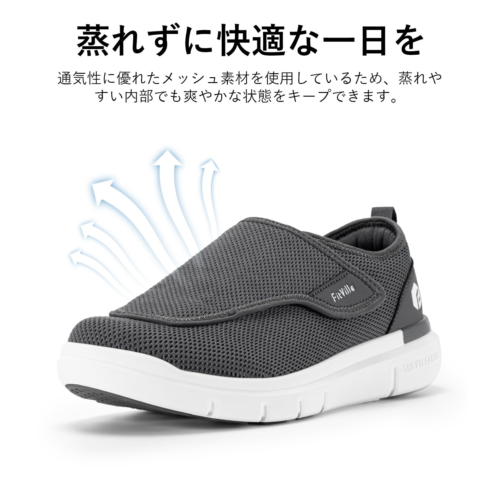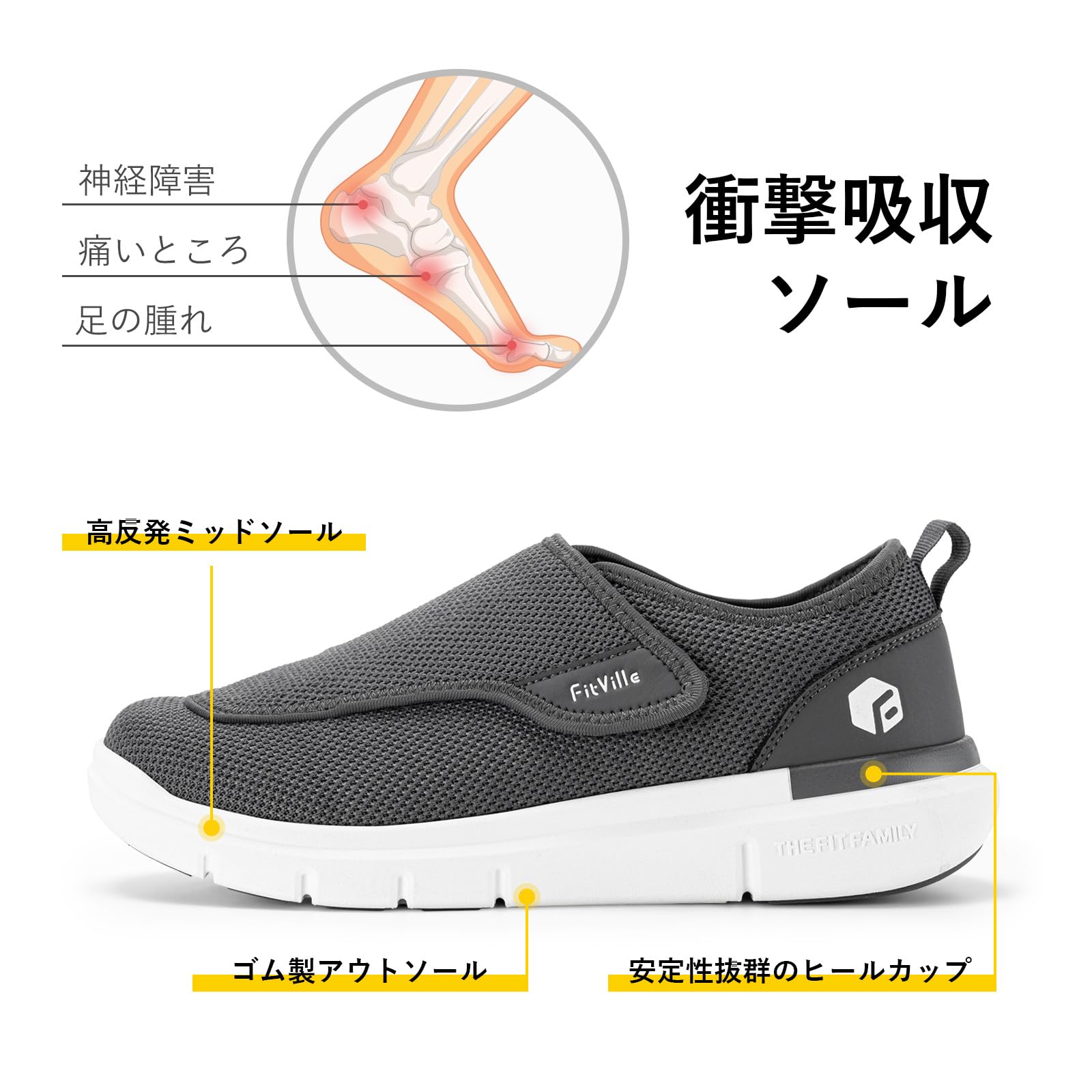 [FitVille] 介護シューズ メンズ 2E 4E 6E 幅広 介護用靴 マジックテープ付き 超軽量 高齢者 靴 ギプスシューズ 手を使わずに履けるスニーカー 転倒予防