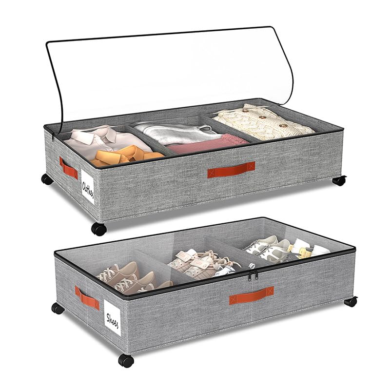 wovte ベッド下収納ボックス 大容量 綿麻 収納ボックス 蓋付き 衣類収納 洋服 布団ケース 折り畳み 収納ケース 收纳箱 通気 耐久性 幅81×奥行41×高さ15cm (グレー 2個セット)