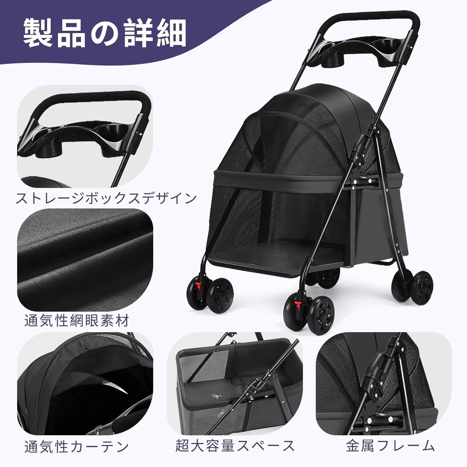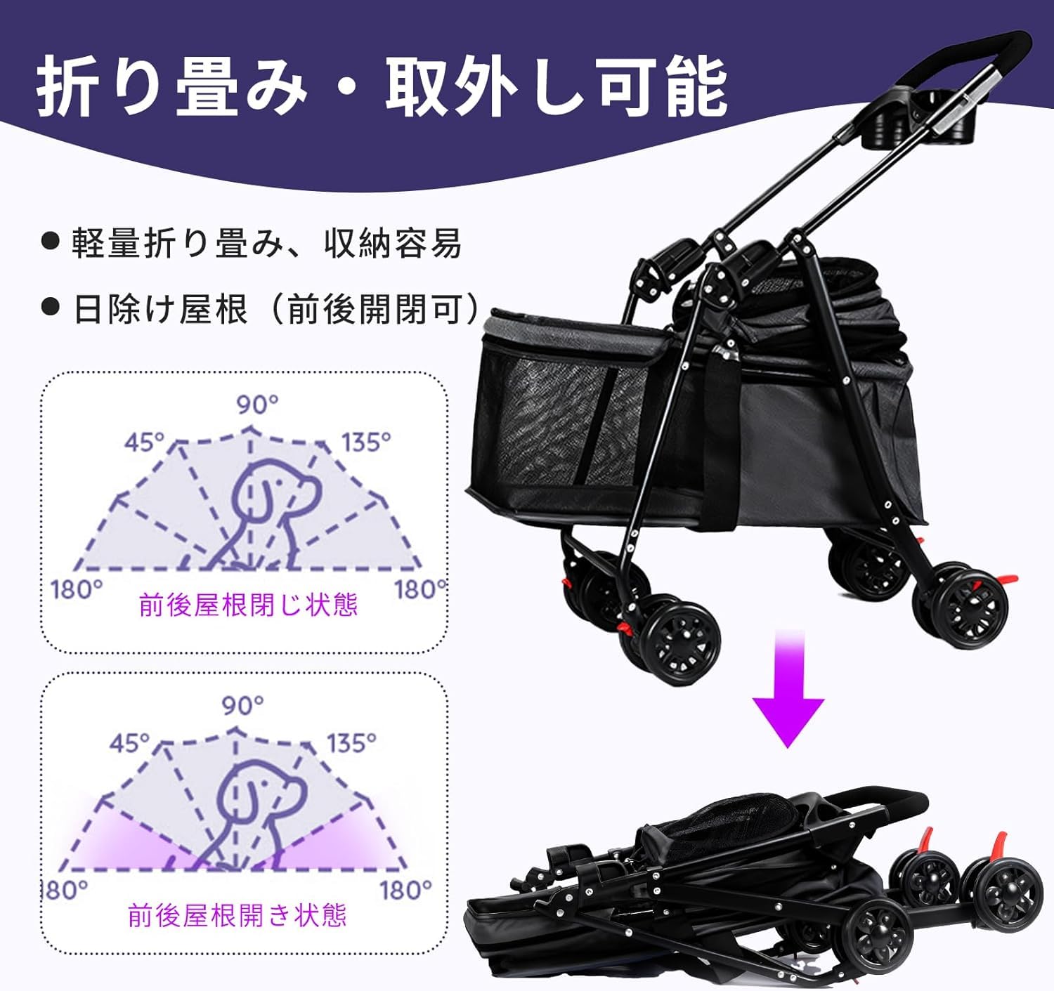 折りたたみ式ダブルペットベビーカー 小型中型猫2匹用 軽量シングル&ダブル統合ペットベビーカー 取り外し可能なキャリア付き