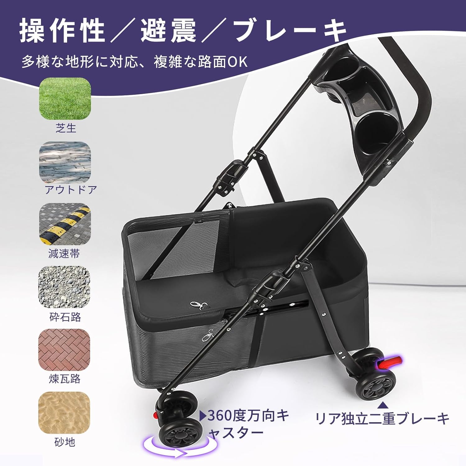 LPOTIUS ペットカート 軽量 折りたたみ 対面式 2way 犬用ベビーカー 猫バギー 4輪 前輪360度回転 後輪ブレーキ付 中型犬 小型犬 多頭用 猫犬兼用 老犬 お出かけ 通院 介護用 多機能 ペットバギー ドッグカート 耐荷重20KG (グレー レインカバー付き)