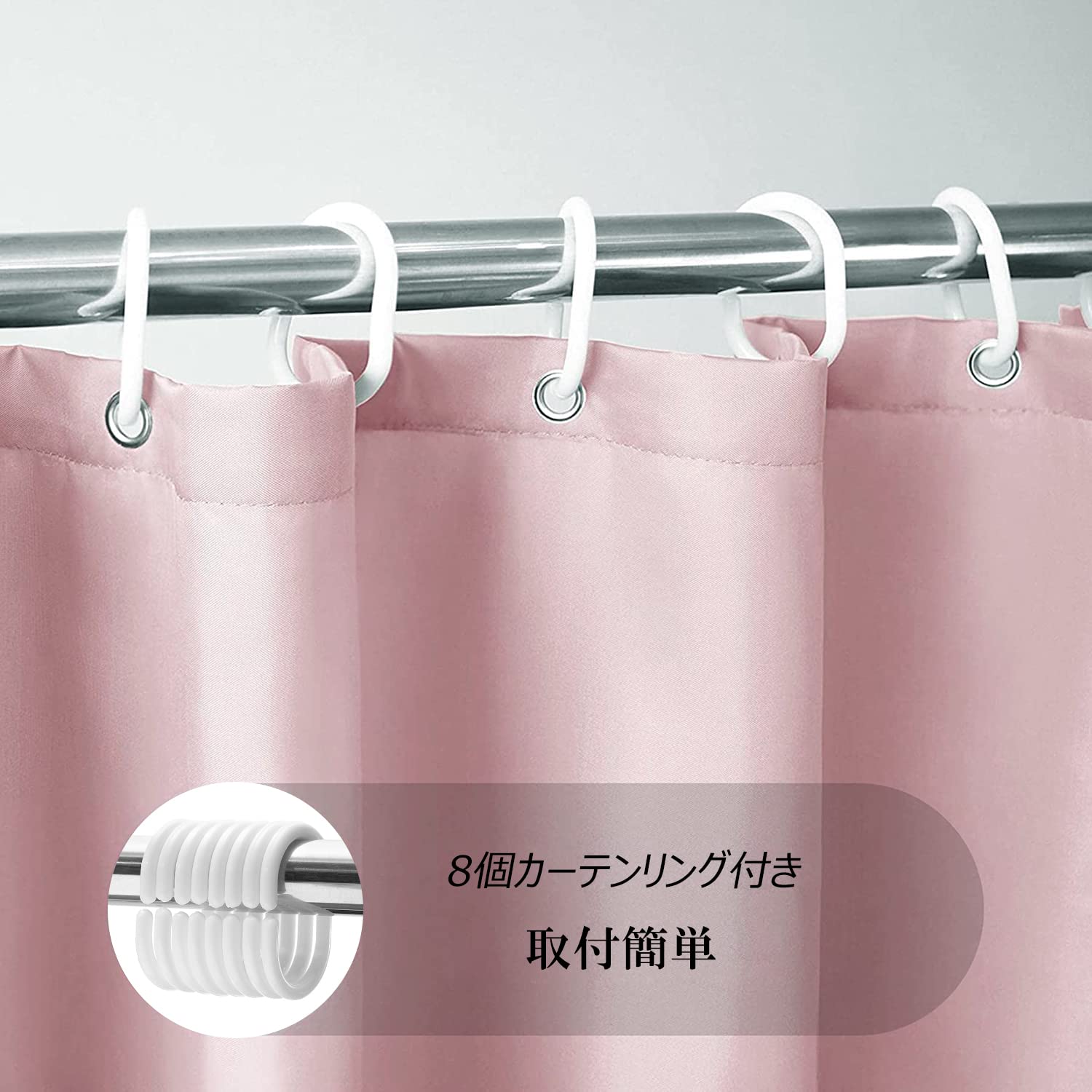 AooHome シャワーカーテン 目隠し 遮像 防カビ 防水 135cm幅 180cm丈 バス用品 ユニットバス ロング お風呂用カーテン 軽量 速乾 リング付き 無地 白 ピンク