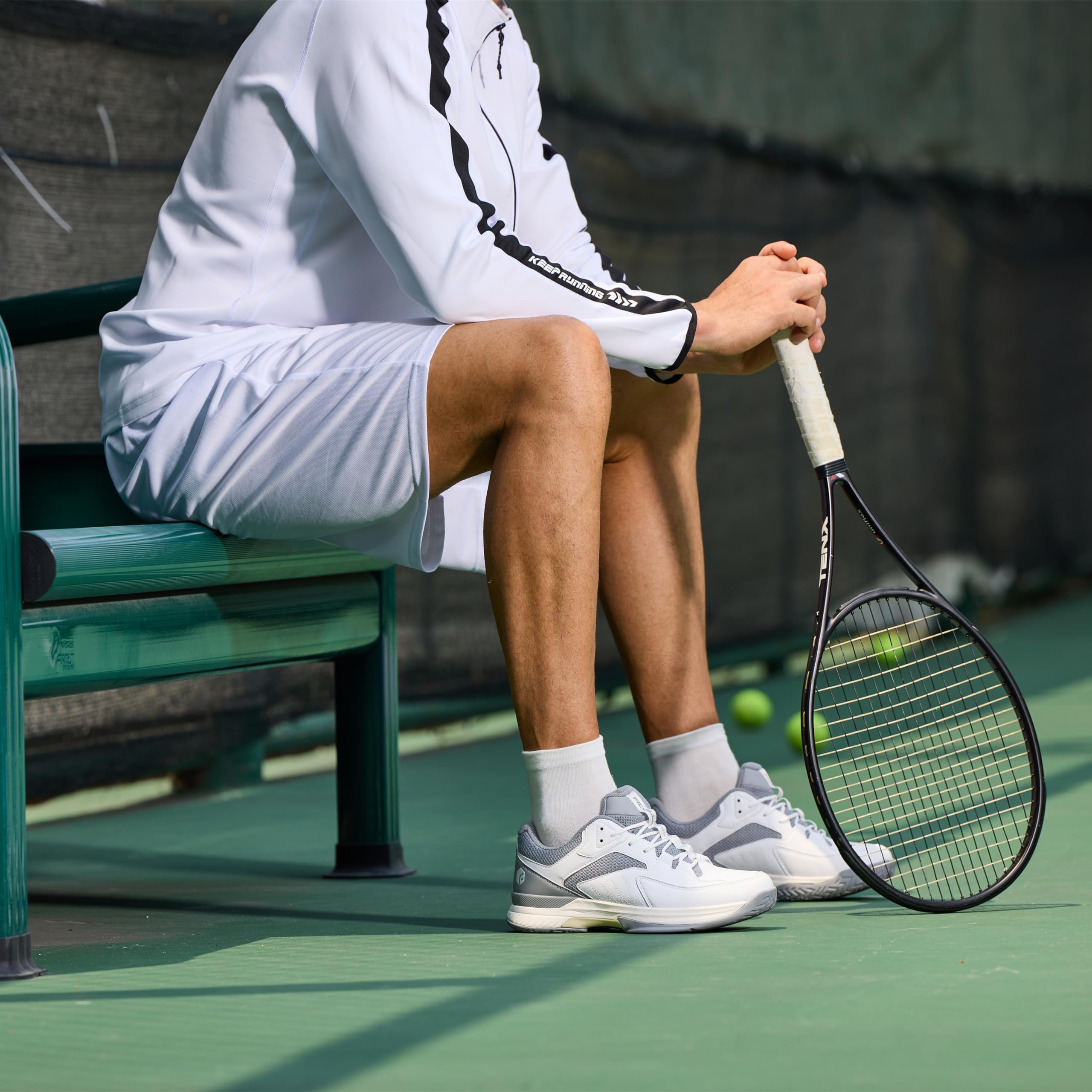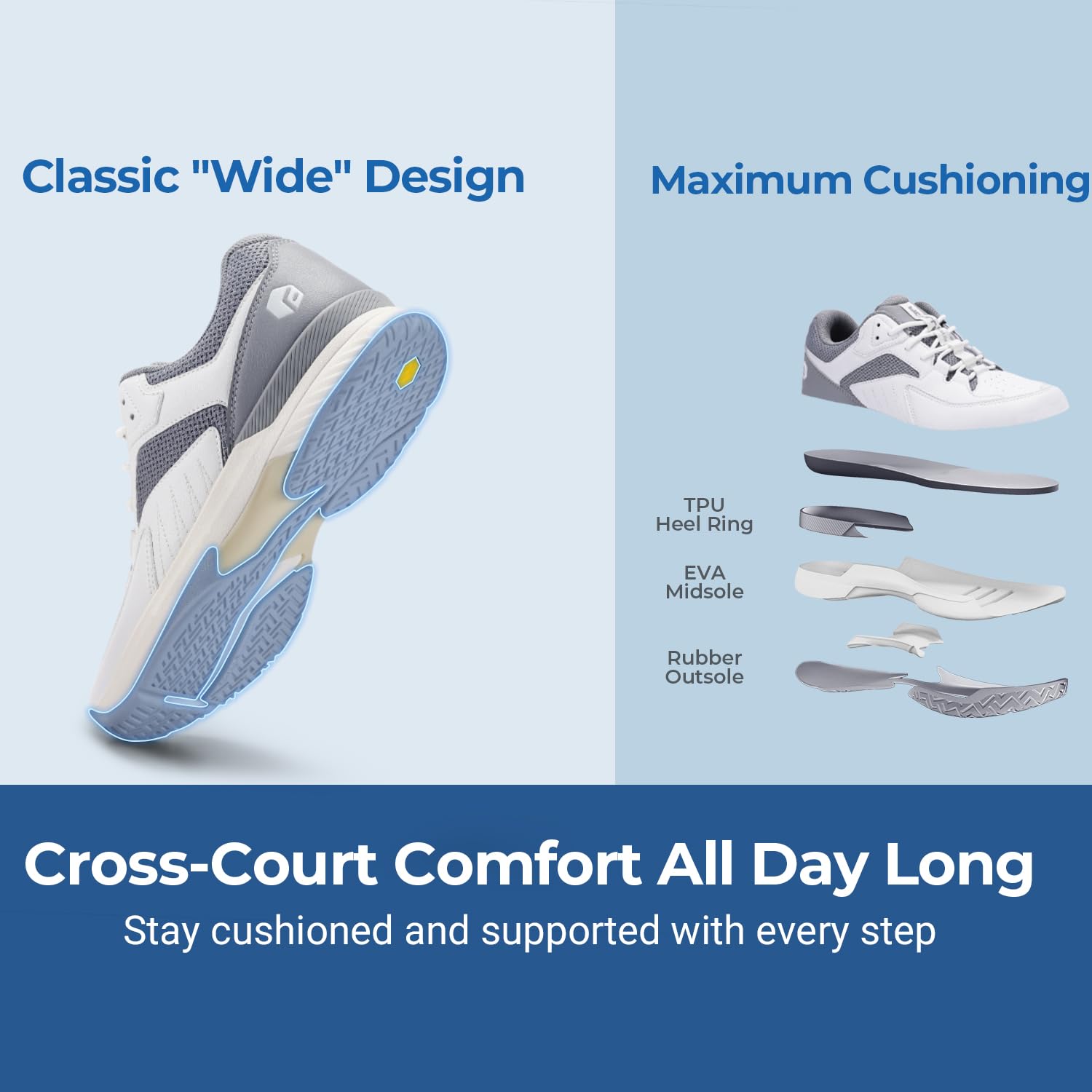 [FitVille] 幅広 テニスシューズ メンズ 2E 4E ワイド オールコート テニス用 運動靴 ハードコート ピックルボールシューズ 軽量 滑り止め 初級者 [Size: 26.0 cm 4E]; [Color: Gray]