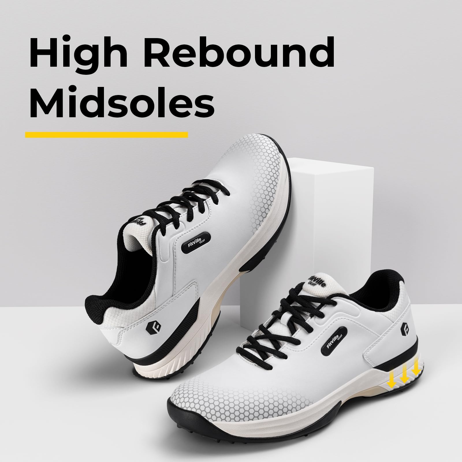 [FitVille] 幅広 ゴルフシューズ メンズ 2E 4E プロゴルフ靴 ソフトスパイク付き 軽量 防水 防滑[Size: 27.0 cm 4E]; [Color: Black and White]