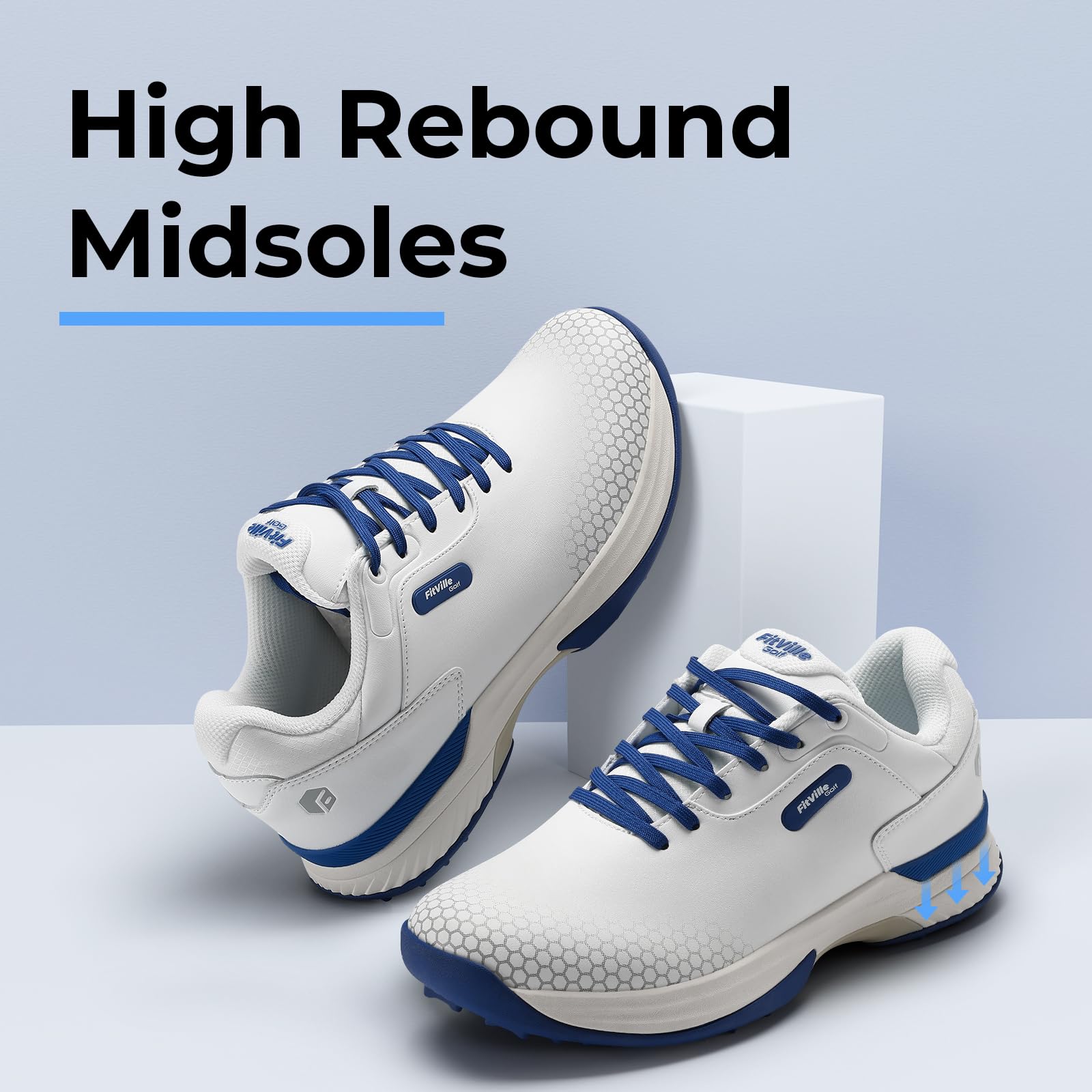 [FitVille] 幅広 ゴルフシューズ メンズ 2E 4E ゴルフ用 スニーカー スパイク 軽量[Size:28.0 cm 2E];[Color:Blue]