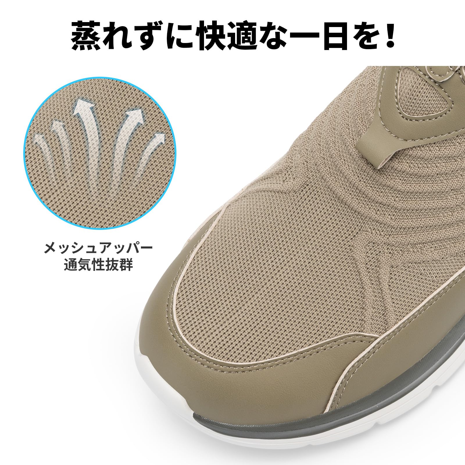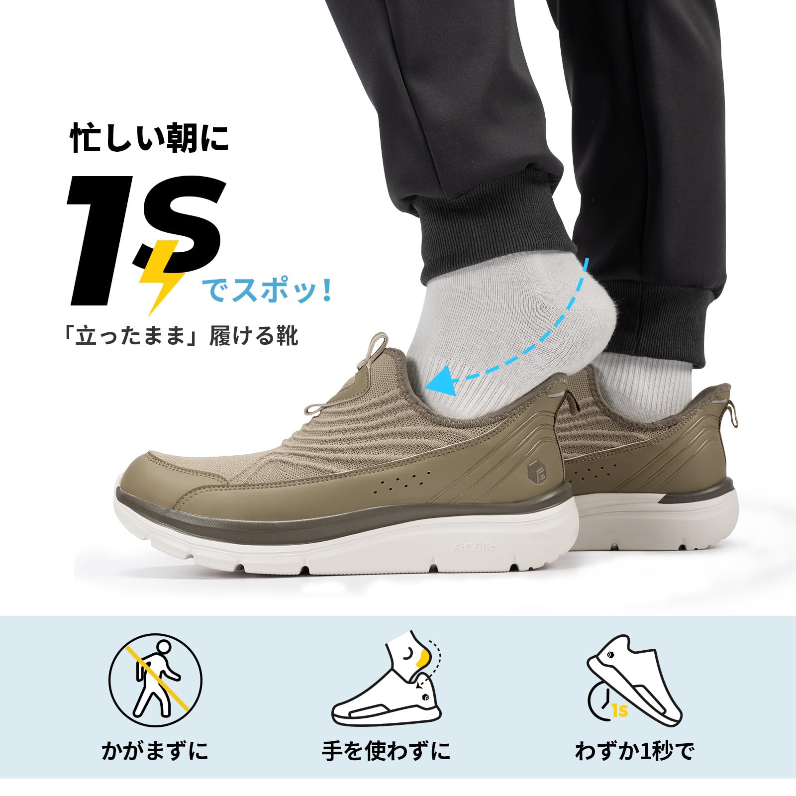 [FitVille] 幅広 スリッポン スニーカー メンズ 2E 4E ウォーキングシューズ ランニングシューズ 手を使わずに履けるスニーカー ハンズフリー 靴 運動靴 厚底 軽量 脱ぎ履きしやすい [size:26.0 cm 4E];[color:カーキ]