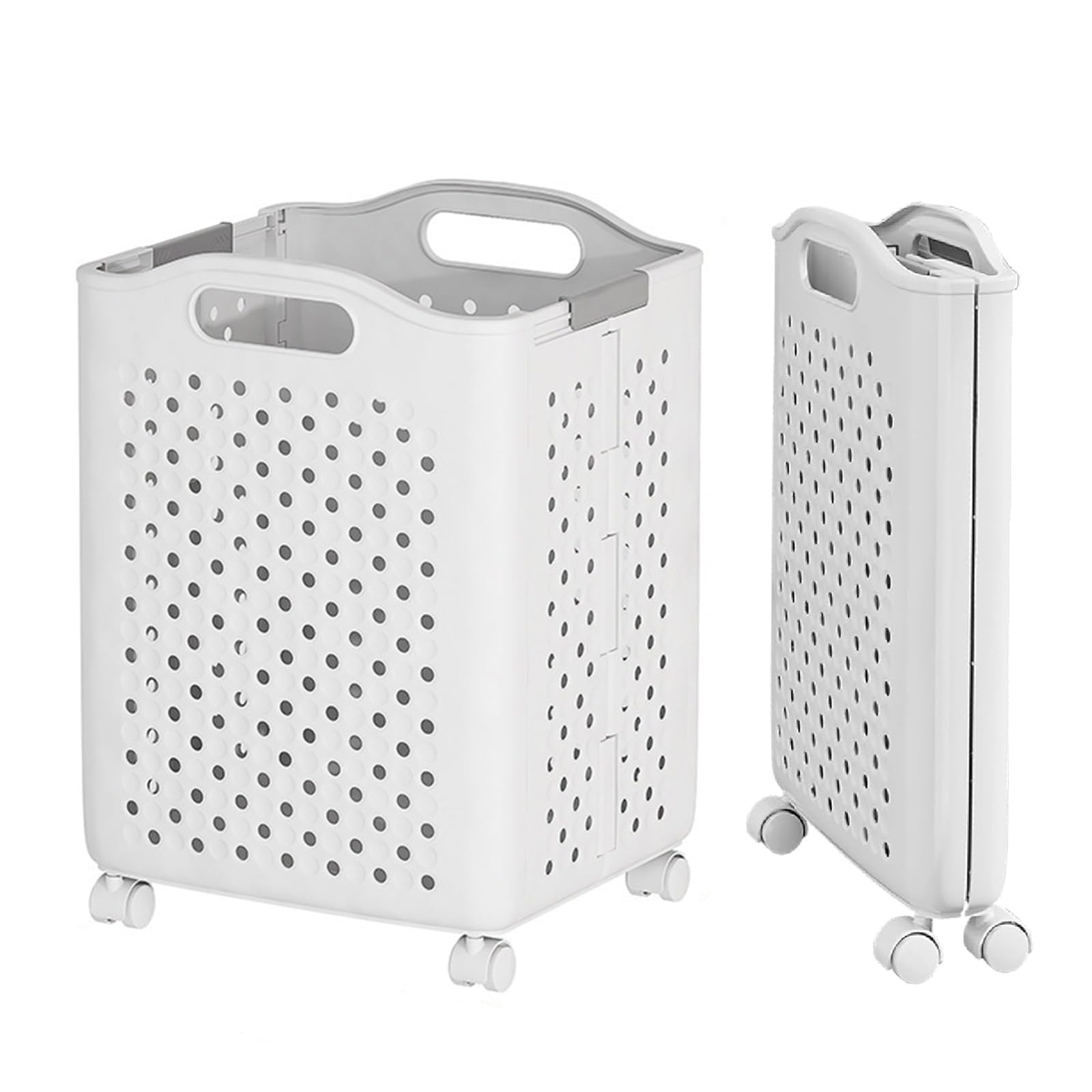 折りたたみ式ランドリーバスケット, キャスター付き, 取っ手付き, 大容量収納, パンチング加工, ホワイト (L) [並行輸入品]
