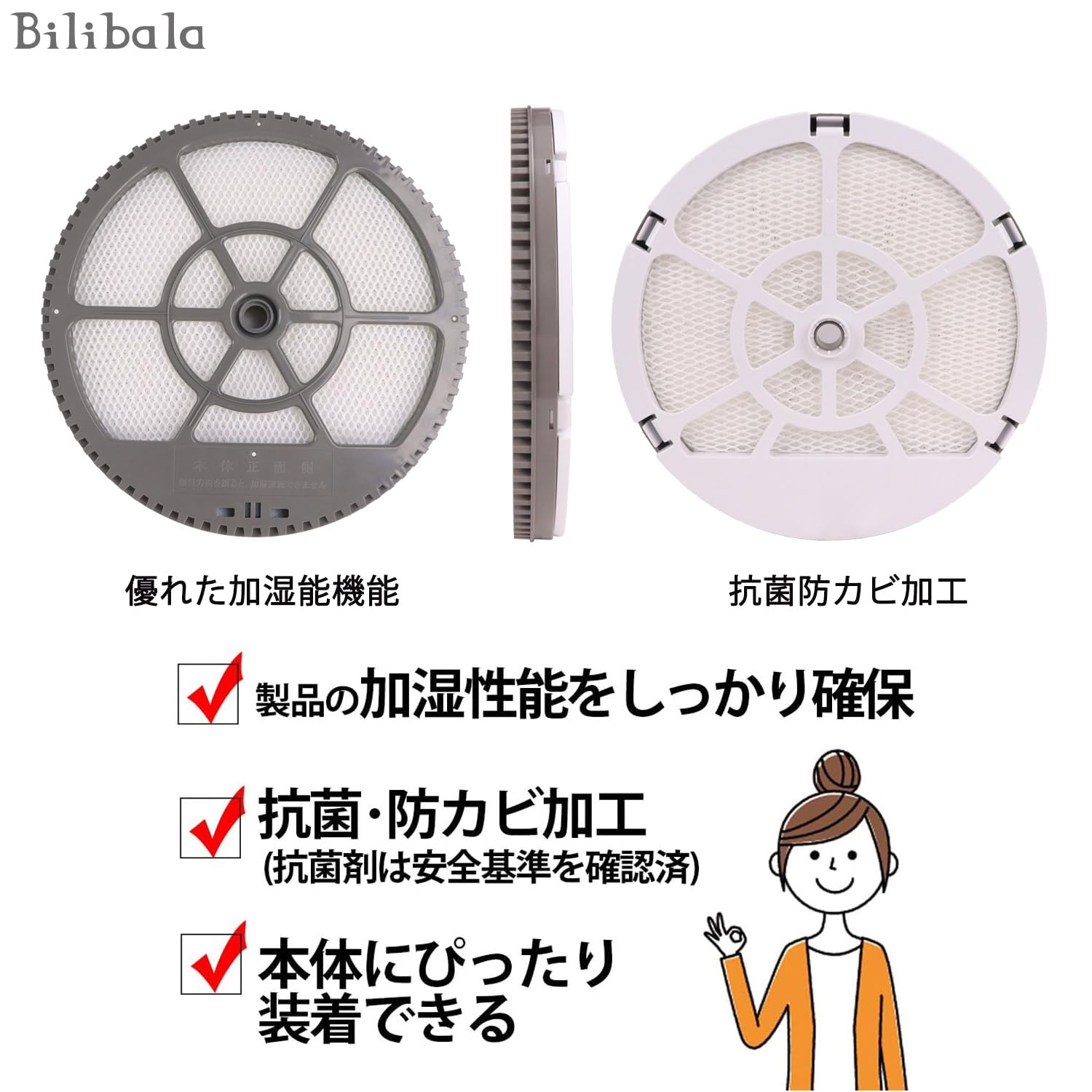 Bilibala H060518 H060511 H060509 抗菌気化フィルター ハイブリッド式 加湿器用 加湿フィルター 1枚入り