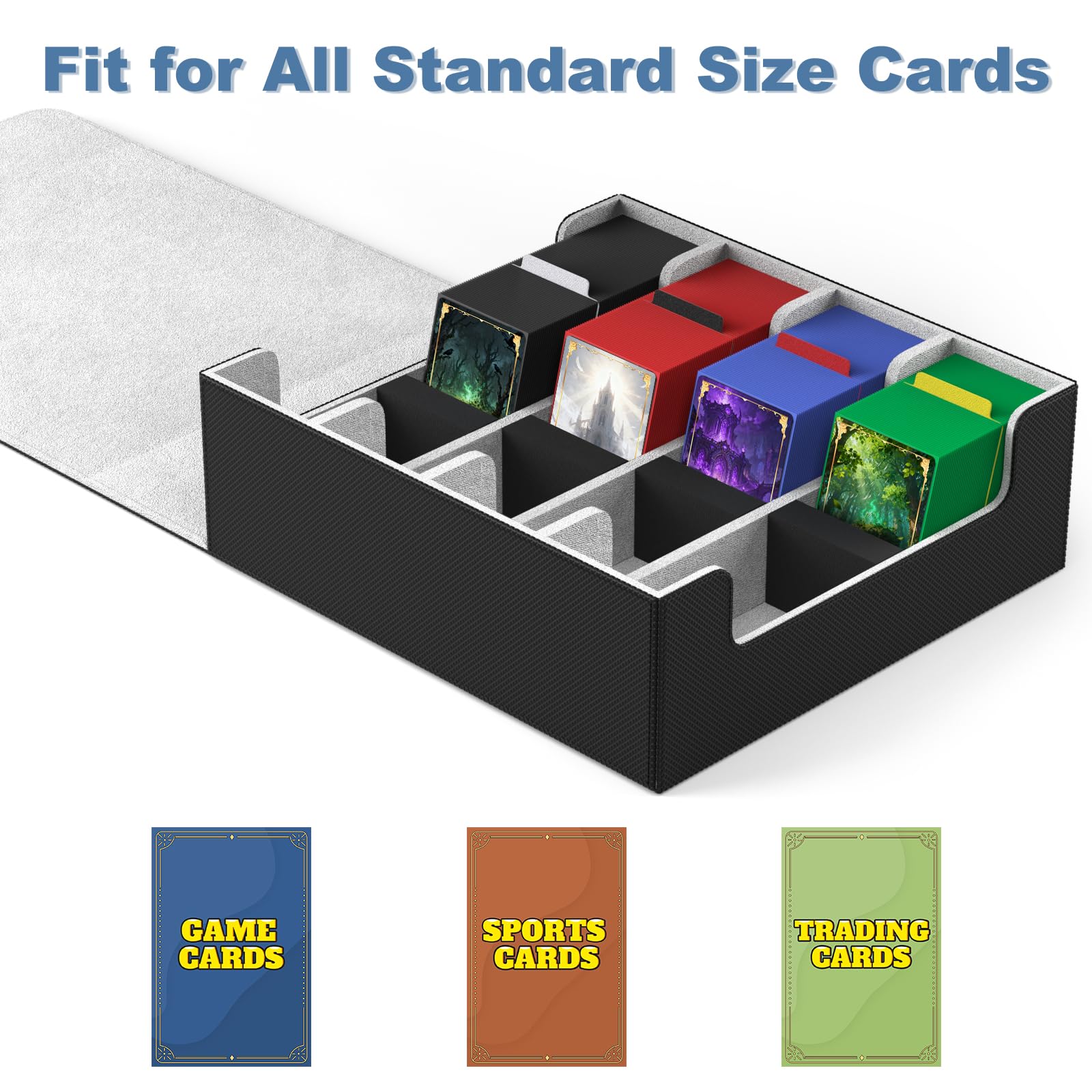 デッキケース トレカケース カードストレージボックス カードケース トレカ収納 仕切り板 カードストッパー付き「 遊戯王 ポケカ MTG 各種 カードゲーム に対応 」 (黒-内装灰, 4列)