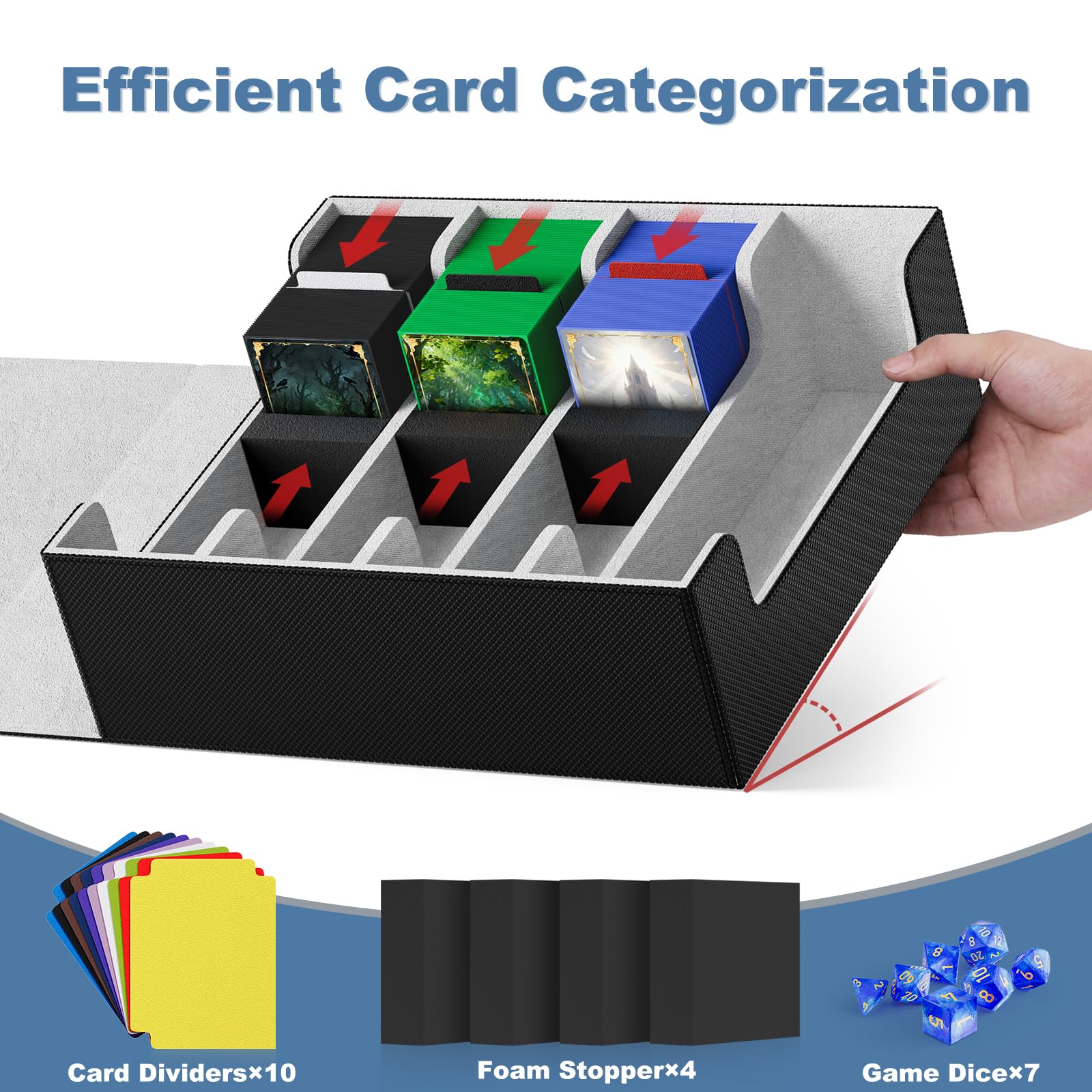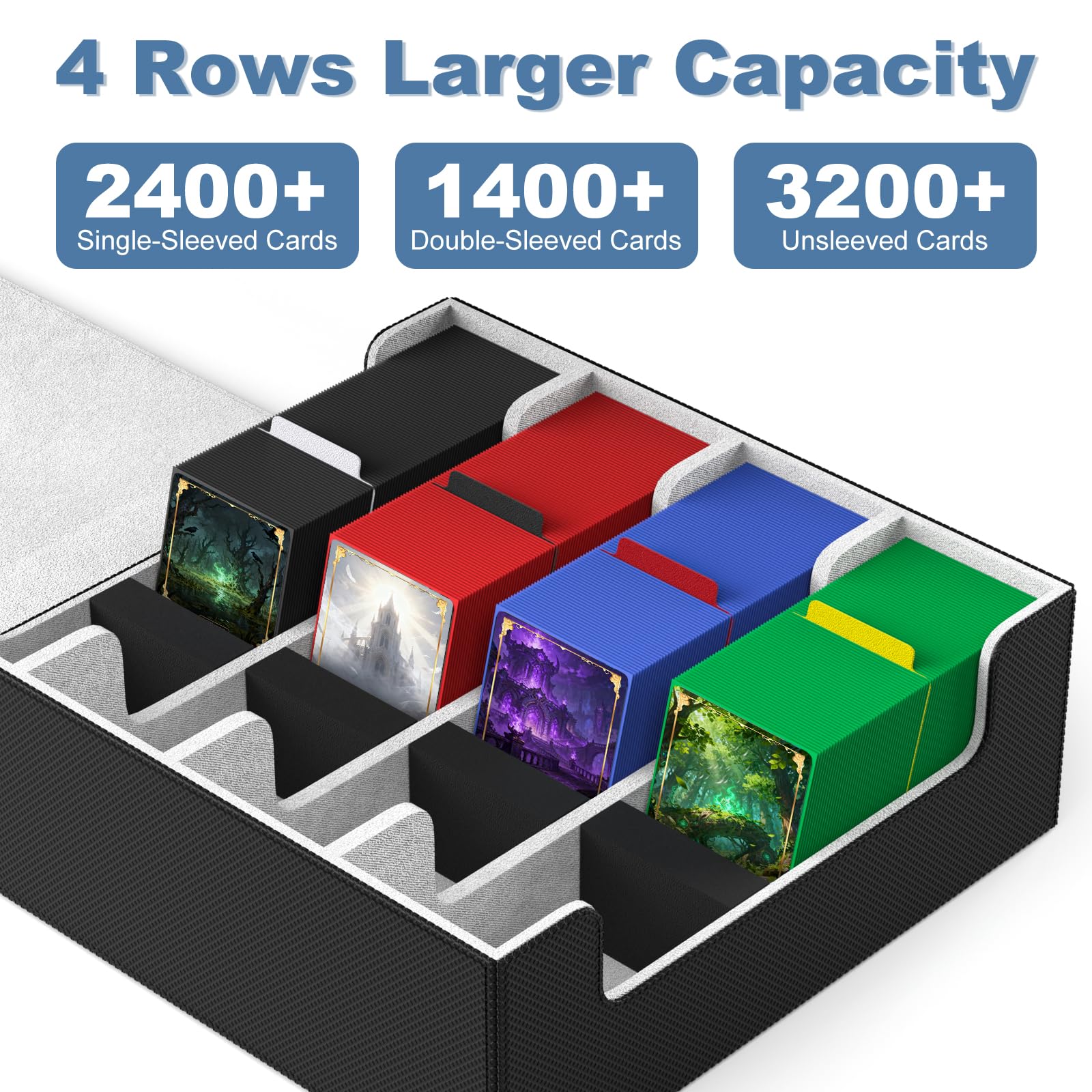 Mlikero デッキケース カードケース 大容量 2400枚収納 カードケース トレカ マグネットトレカケース ストレージボックス トレカ 仕切り10 枚、フォームプラグ4個付き「遊戯王ポケカ MTG デュエマ 各種 カードゲーム に対応」(黒灰)