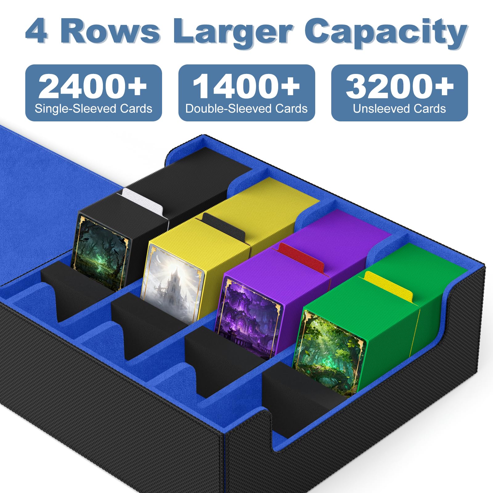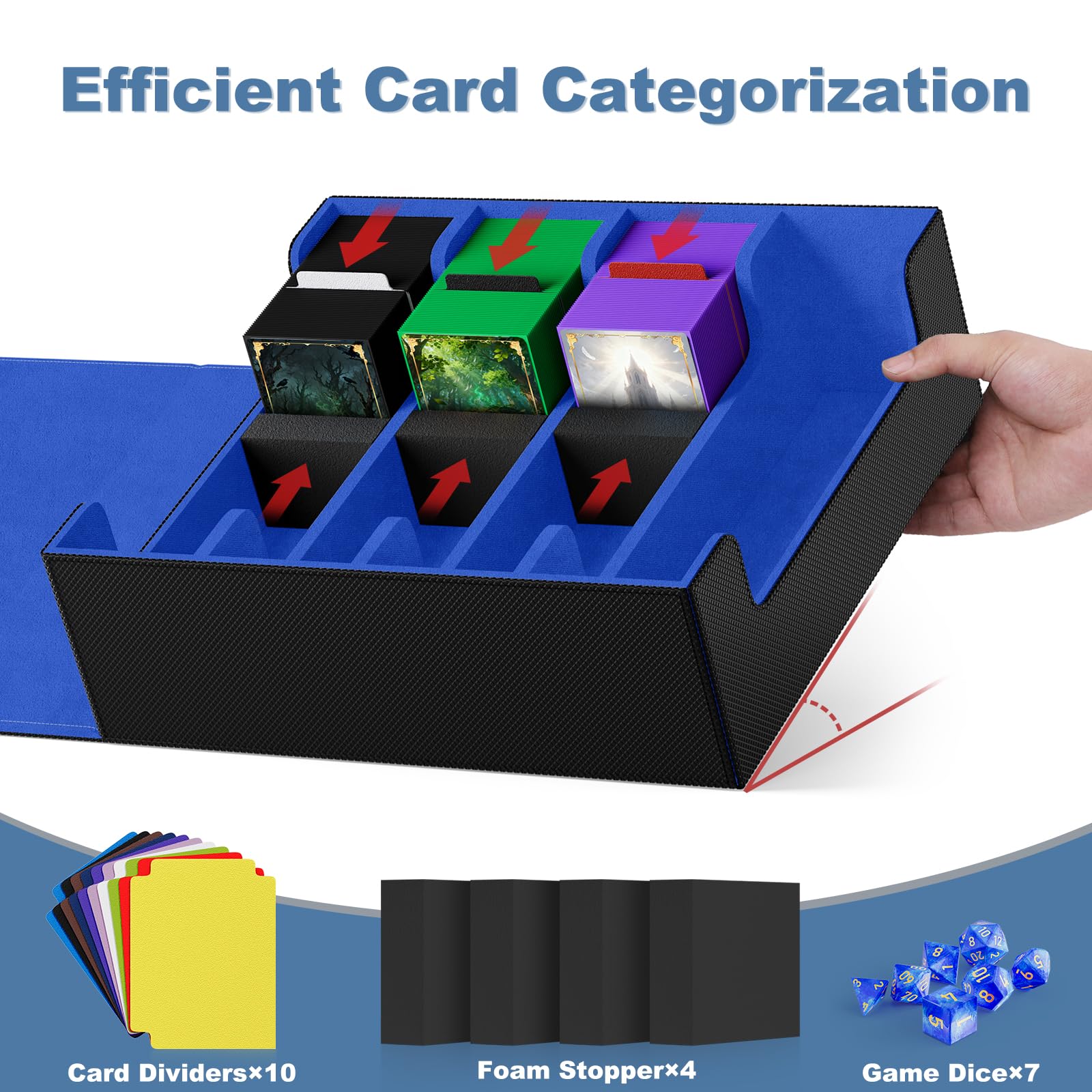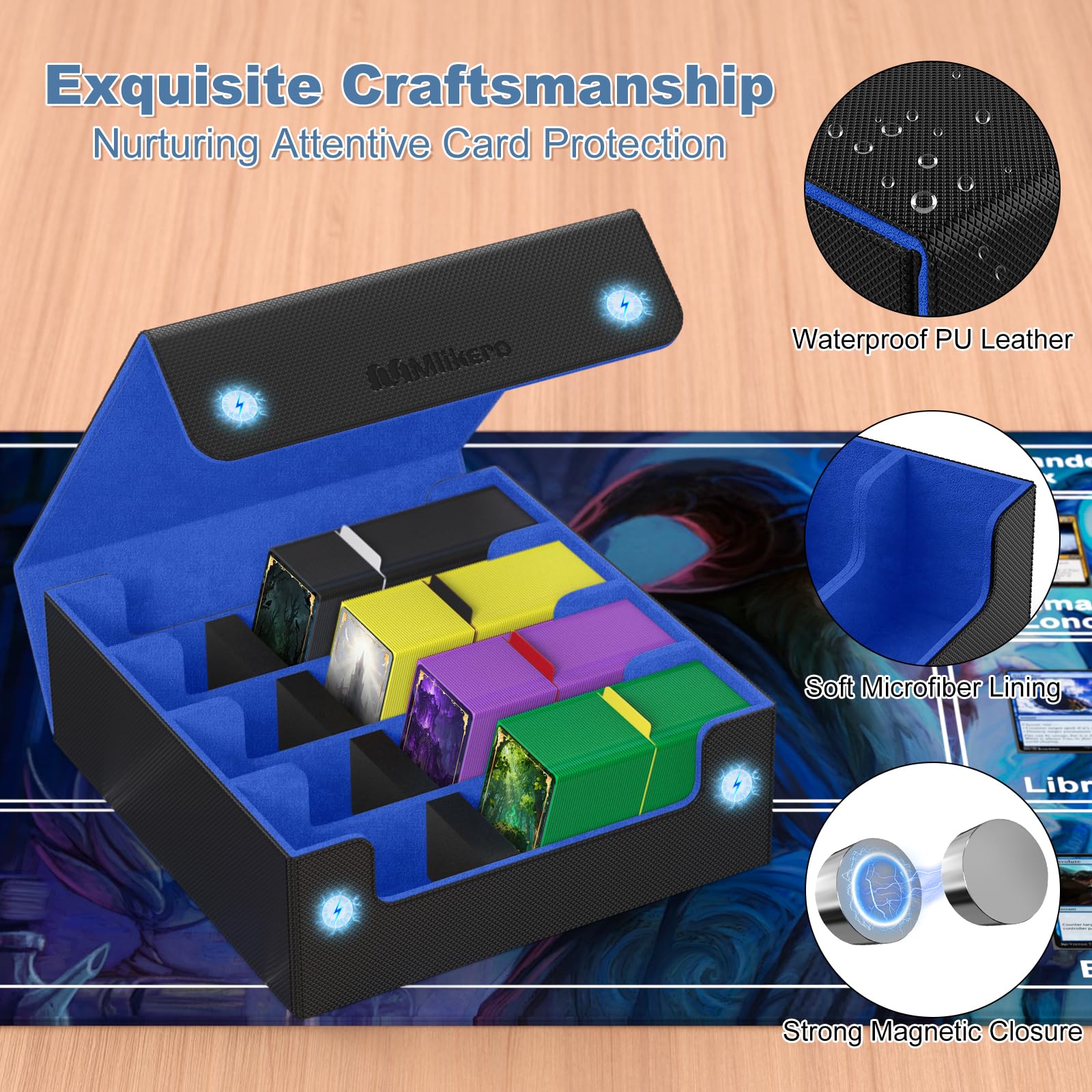 Mlikero デッキケース カードケース 大容量 2400枚収納 カードケース トレカ マグネットトレカケース ストレージボックス トレカ 仕切り10枚、フォームプラグ4個付き「遊戯王ポケカ MTG デュエマ 各種 カードゲーム に対応」(黒青)