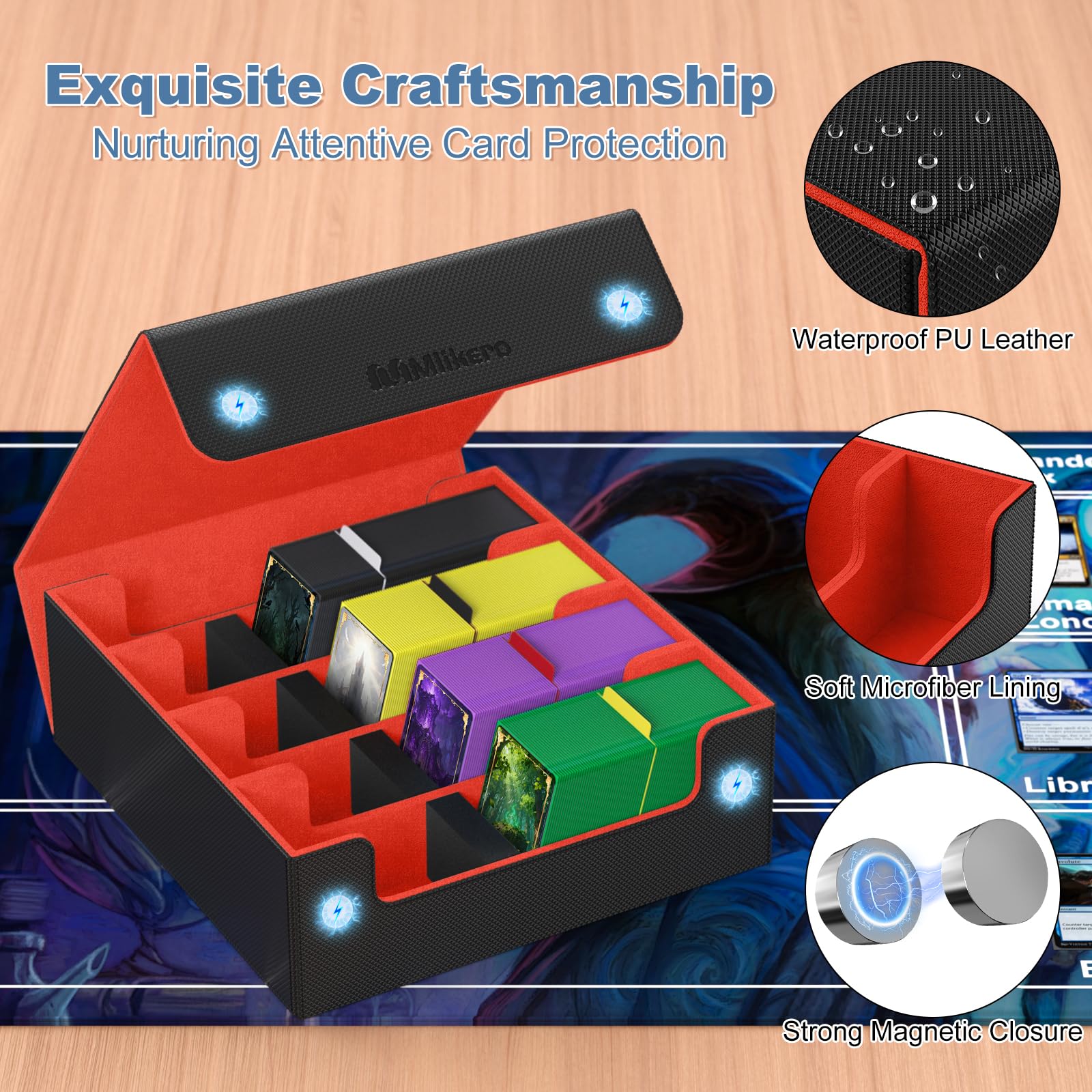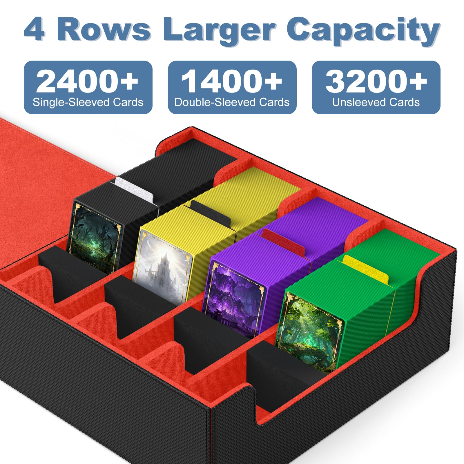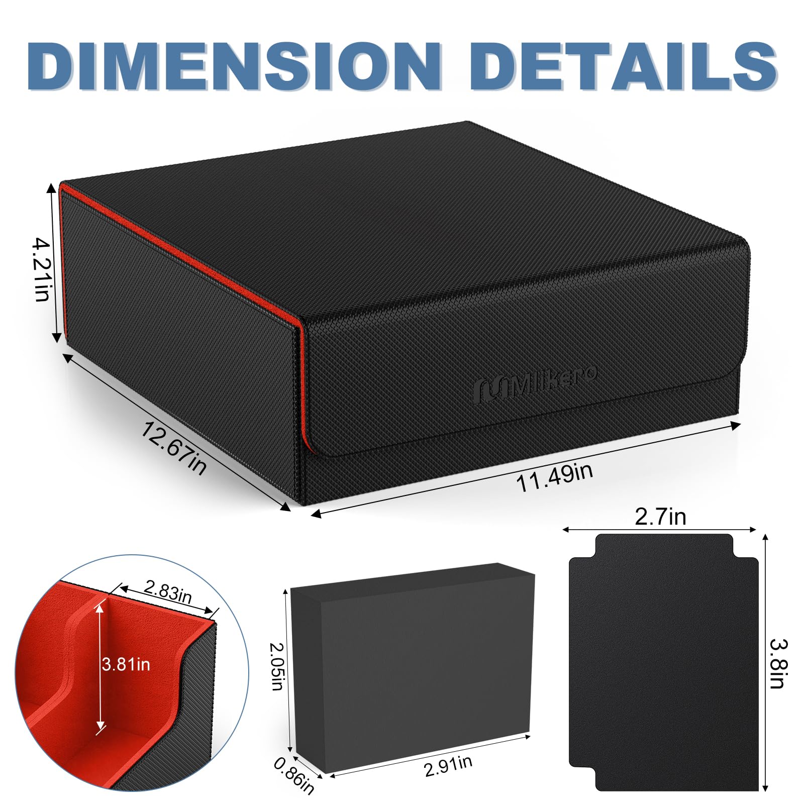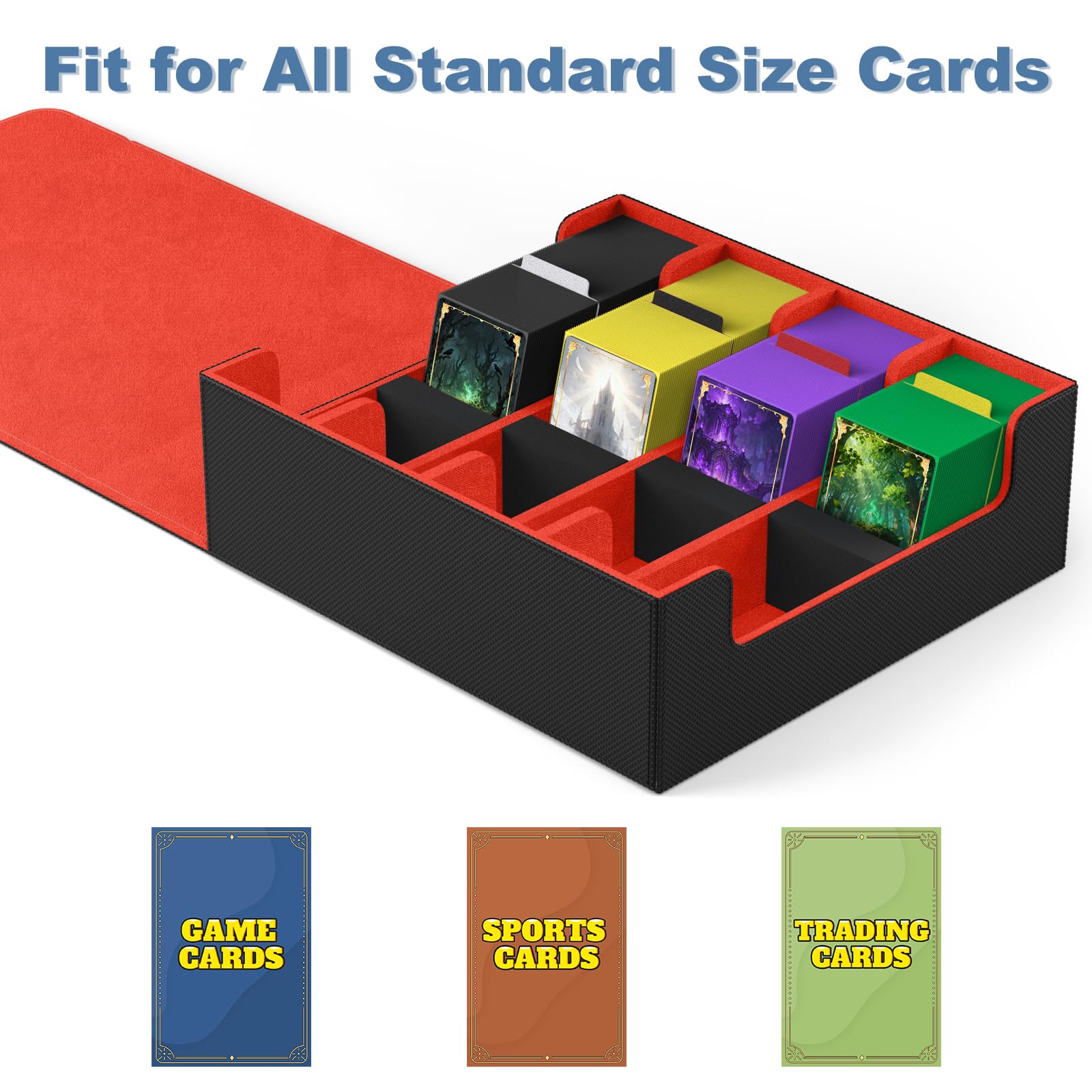 Mlikero デッキケース カードケース 大容量 2400枚収納 カードケース トレカ マグネットトレカケース ストレージボックス トレカ 仕切り10枚、フォームプラグ4個付き「遊戯王ポケカ MTG デュエマ 各種 カードゲーム に対応」(黒赤)