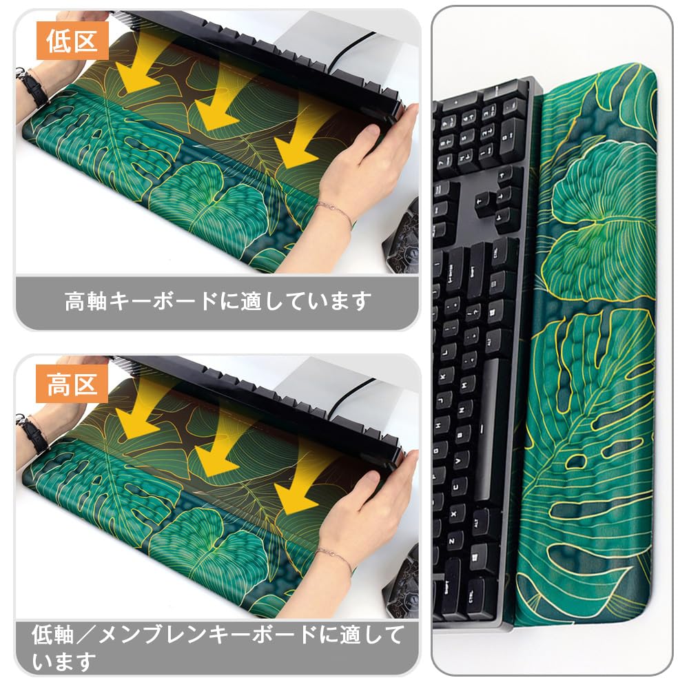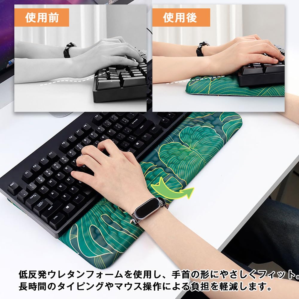 キーボードリストレスト パームレスト リストレスト 低反発PU材質 人間工学デザ 効果的な痛みの軽減には、手首の圧力が適しています。家庭、オフィス、コンピューターゲーム、ラップトップのキーボード クッション。 (グラデーショングリーン)