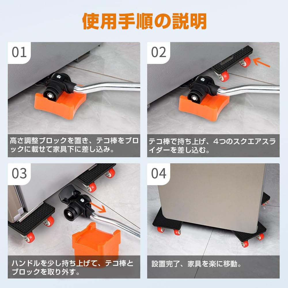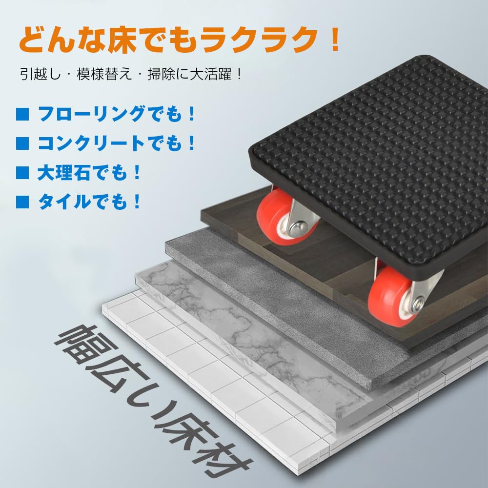YFFSFDC 家具移動キャリー 台車セット 360度回転キャスター台車 家具移動小型車 耐荷重400kg 滑車 移動ホイール 家具移動アシスタント コンパクト収納・フローリング保護設計 荷物運び 引っ越
