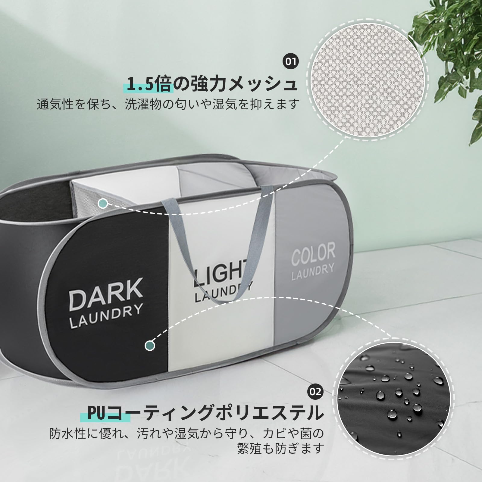 洗濯かご 折りたたみ ランドリーバスケット メッシュ素材 36L 折り畳み式 洗濯カゴ ランドリー収納 ランドリーバッグ 自立 大容量 コンパクト 洗濯ボックス 洗濯物入れ 衣類収納 洗濯物カゴ 省スペース (1段/ホワイト)