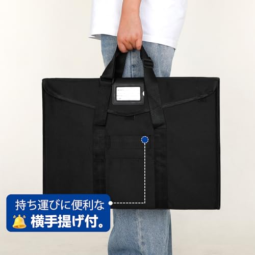 WISEPRO ドキュメントファイル パネルバッグ 大判 A1 サイズ ポスター収納 アート 手提げ 肩掛け 書類バッグ 図面ケース 61×91cm トートバッグ 大容量 名刺入れ・ポケット付 製図板用 作品収納 (ブラックB3)