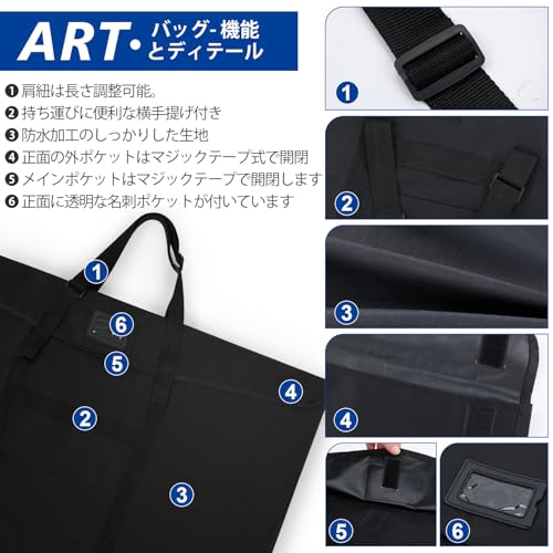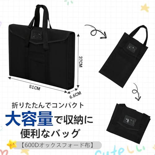 画材バッグ 絵画袋 画板袋 収納バッグ 手提げバッグ 図工バッグ 製図板バッグ 図面ケース 美術バッグ A2 軽量 防水 手提げ 大容量 画板入れ 多機能 67x54cm 折り畳め 厚手 男女兼用 ブラック 軽い