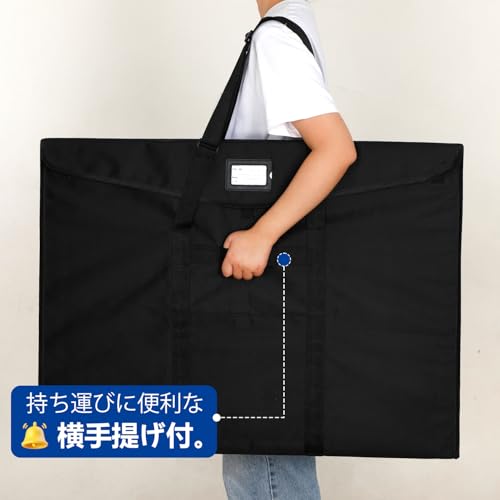 WISEPRO ドキュメントファイル パネルバッグ 大判 A1 サイズ ポスター収納 アート 手提げ 肩掛け 書類バッグ 図面ケース 61×91cm トートバッグ 大容量 名刺入れ・ポケット付 製図板用 作品収納 (ブラックA2)
