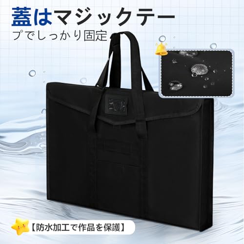 画材バッグ 絵画袋 画板袋 収納バッグ 手提げバッグ 図工バッグ 製図板バッグ 図面ケース 美術バッグ A2 軽量 防水 手提げ 大容量 画板入れ 多機能 67x54cm 折り畳め 厚手 男女兼用 ブラック 軽い