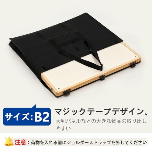 WISEPRO ドキュメントファイル パネルバッグ 大判 A1 サイズ ポスター収納 アート 手提げ 肩掛け 書類バッグ 図面ケース 61×91cm トートバッグ 大容量 名刺入れ・ポケット付 製図板用 作品収納 (ブラックB2)