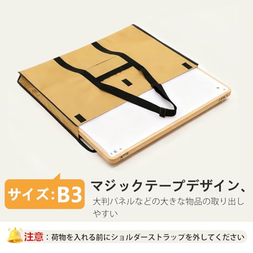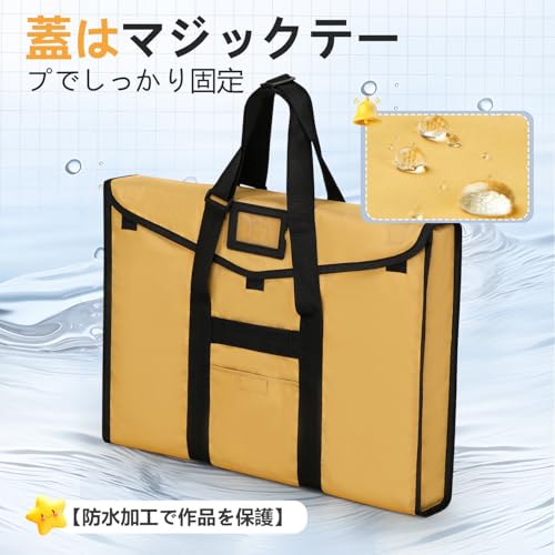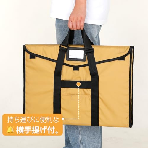 WISEPRO ドキュメントファイル パネルバッグ 大判 A1 サイズ ポスター収納 アート 手提げ 肩掛け 書類バッグ 図面ケース 61×91cm トートバッグ 大容量 名刺入れ・ポケット付 製図板用 作品収納 (ターメリックB3)