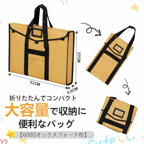 画材バッグ 絵画袋 画板袋 収納バッグ 手提げバッグ 図工バッグ 製図板バッグ 図面ケース 美術バッグ A2 軽量 防水 手提げ 大容量 画板入れ 多機能 67x54cm 折り畳め 厚手 男女兼用 ブラック 軽い