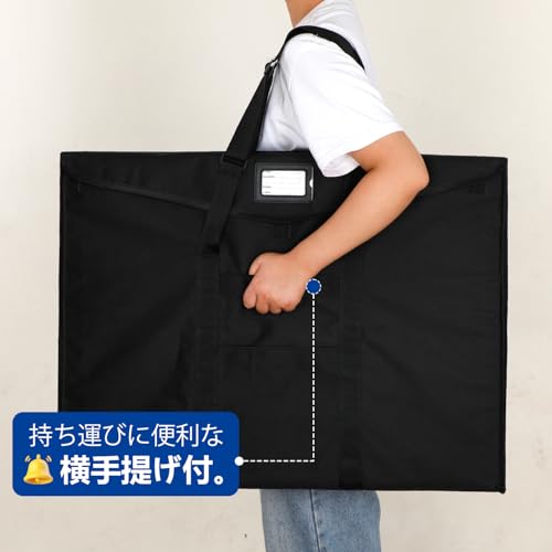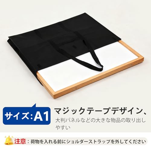 WISEPRO ドキュメントファイル パネルバッグ 大判 A1 サイズ ポスター収納 アート 手提げ 肩掛け 書類バッグ 図面ケース 61×91cm トートバッグ 大容量 名刺入れ・ポケット付 製図板用 作品収納 (ブラックA1)