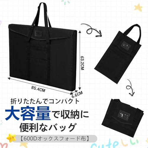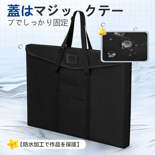 画材バッグ A2 絵画袋 図面絵画ボード収納ファイルバッグ54 x 67cm 画板袋スケッチバッグ 手提げ/肩掛け2way防水 製図板バッグ 絵の具バッグ収納 ブラック トートバッグバッグ キャンバスバッグ 美術 設計図 ドキュメント収納袋 軽量 厚め 大人 子供 男女兼用