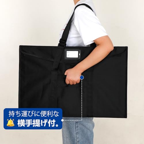 WISEPRO ドキュメントファイル パネルバッグ 大判 A1 サイズ ポスター収納 アート 手提げ 肩掛け 書類バッグ 図面ケース 61×91cm トートバッグ 大容量 名刺入れ・ポケット付 製図板用 作品収納 (ブラックB1)
