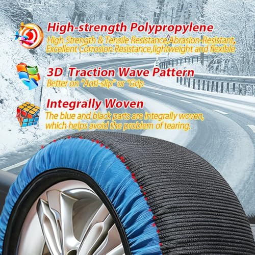 SIXCOM 2024新改良 【正規品】 タイヤチェーン 布製 タイヤチェーン スノーソックス 非金属 タイヤチェーン スノーチェーン 布製 簡単装着 軽量 静音 滑り止め 軽自動車 チェーン ジャッキアップ不要 チェーン規制対応 (SKY-6)