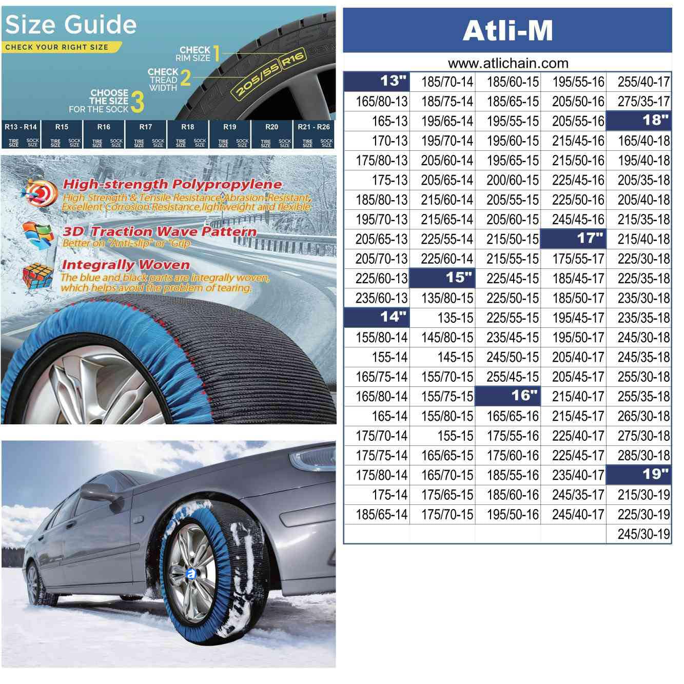 atliprime 2 個セット 滑り止め安全アイスマッドタイヤ用スノーチェーン 3D トラクションウェーブパターン&一体織りオートスノーチェーン(S )