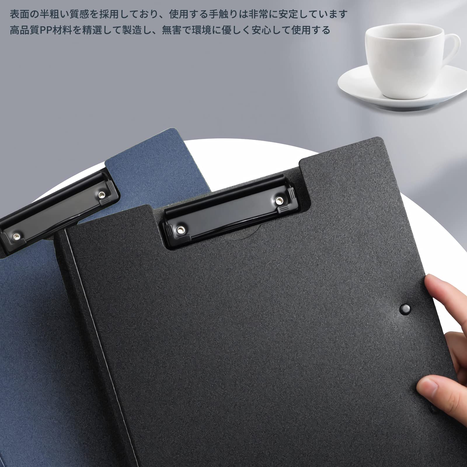 JIDHUHI A4 二つ折 クリップボードフォルダ 5個セット ダブルクリップ 防水・軽量・薄型 書きやすい 会議・ティーチング用 書類整理 ブラック (ダブル固定式クリップ, 5個セット)