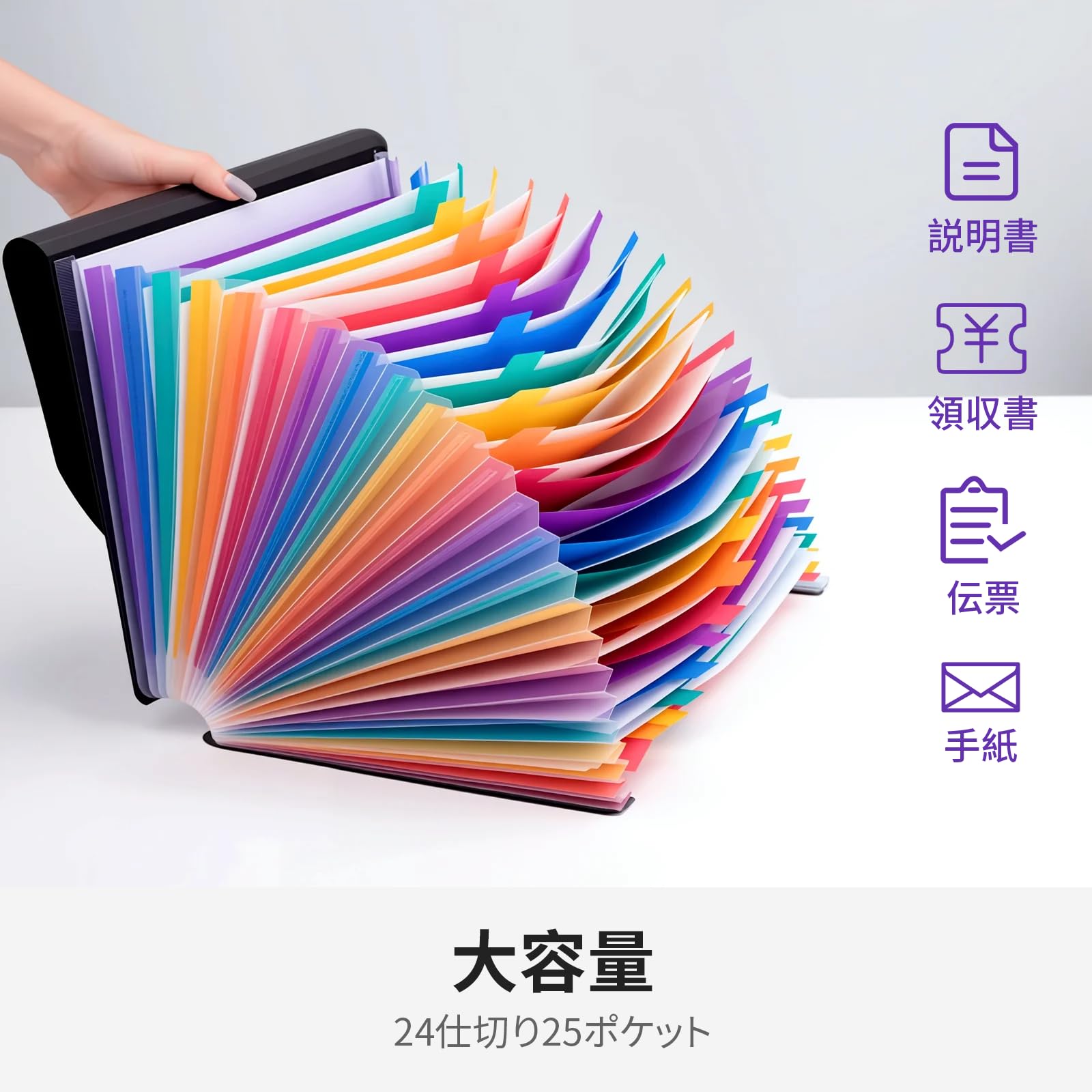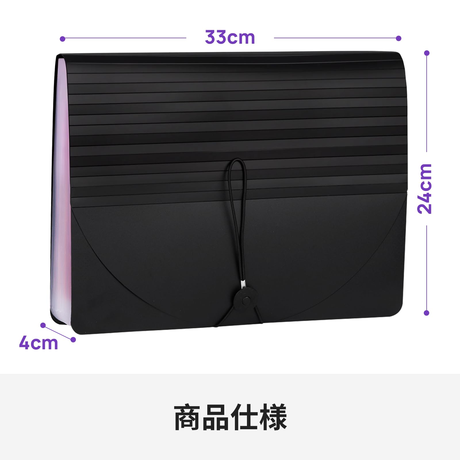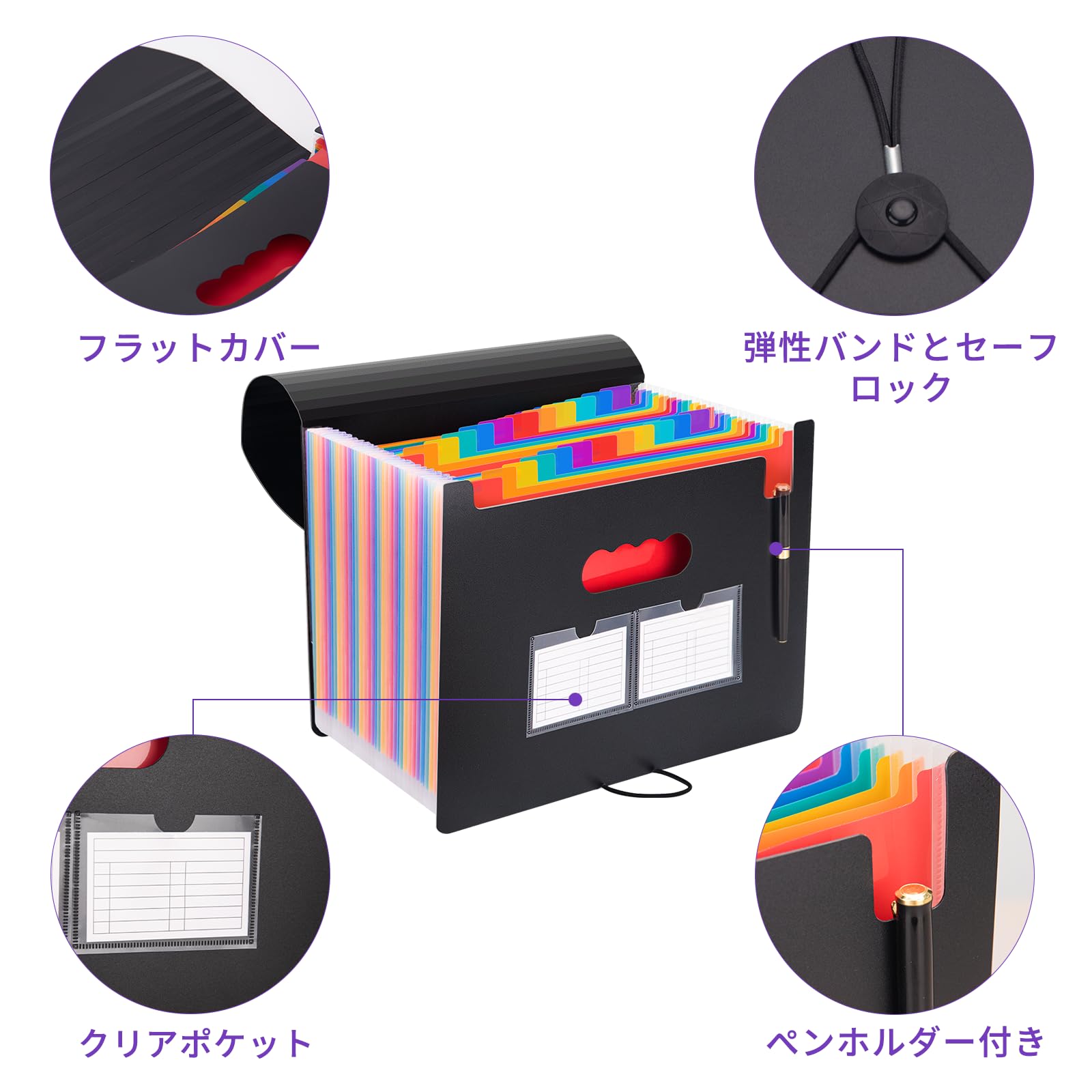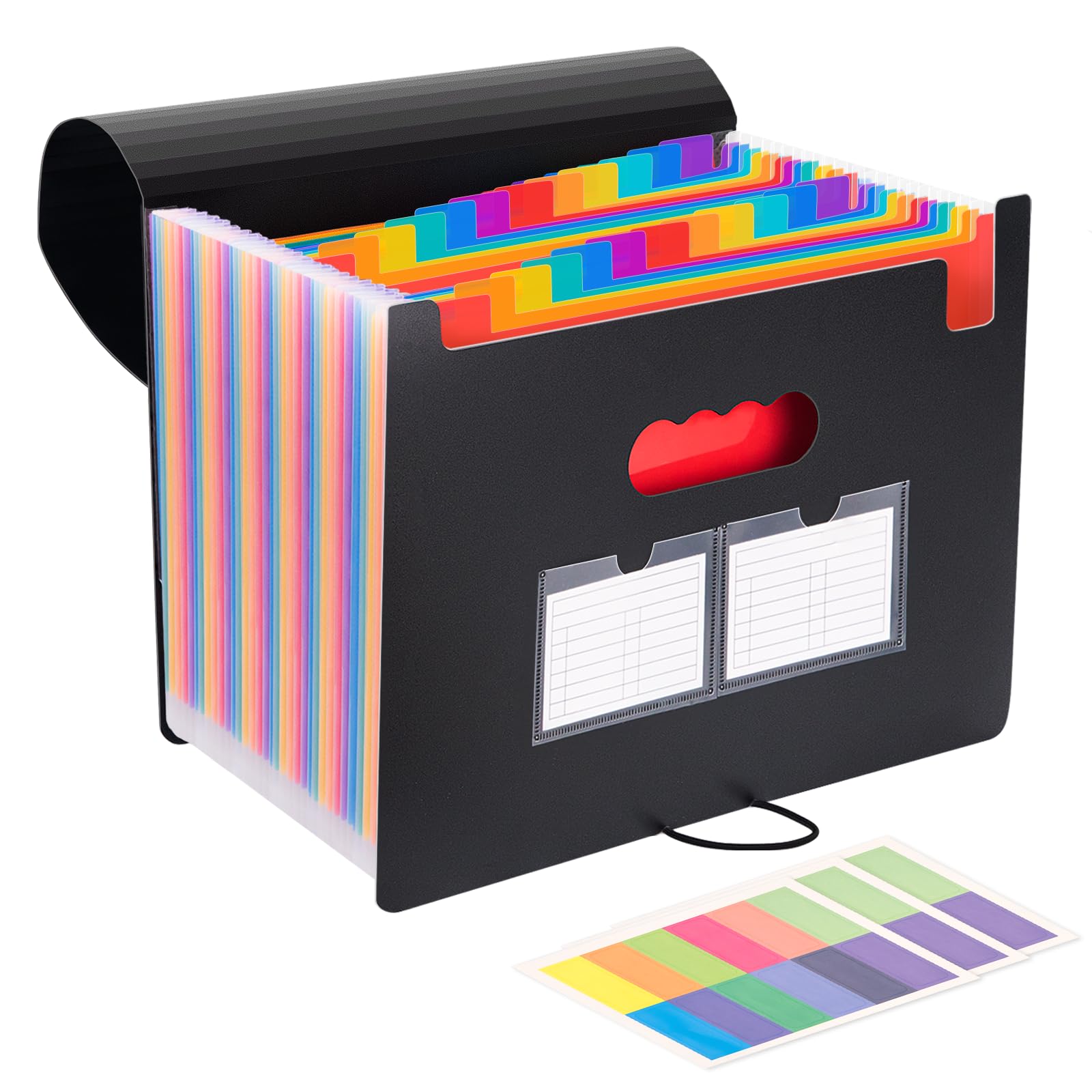 JEFURE ドキュメントスタンド A4 蓋付き 25ポケット 大容量 ジャバラファイル 自立式蛇腹 アコーディオンファイル 色別ファイリング 伸縮可能 書類整理ケース 仕分け オフィス 家庭 学校用(ブラック)