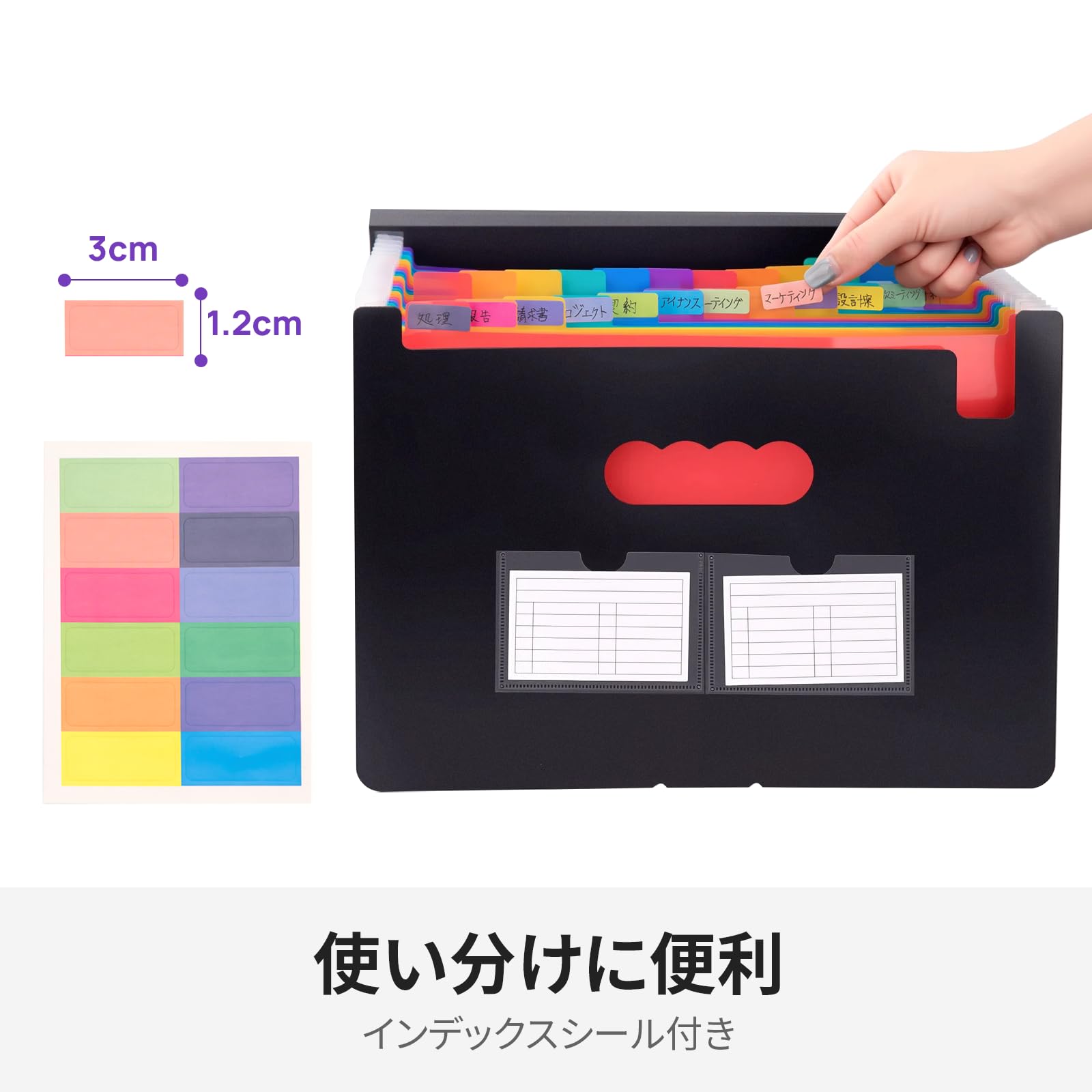 Homdolaser ドキュメントスタンド A4 アコーディオンファイル 13ポケット 書類収納ケース 色別ファイリング 区分けラベル付き 大容量 伸縮 蓋付き 自立式 12仕切り
