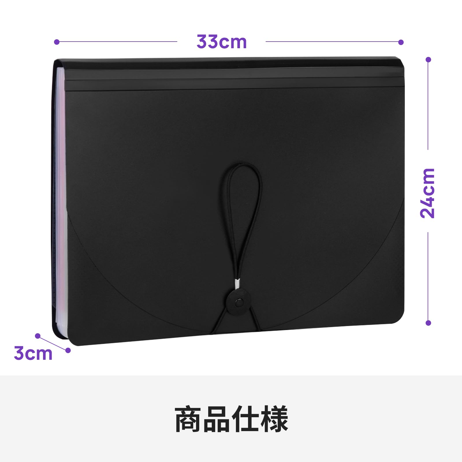 ファイルボックス 5ポケット 拡張ファイルフォルダー ドキュメントファイル A4 スナップ式 防水 ラベル付き 分類収納 教室 オフィス 文房具 (ブラック)