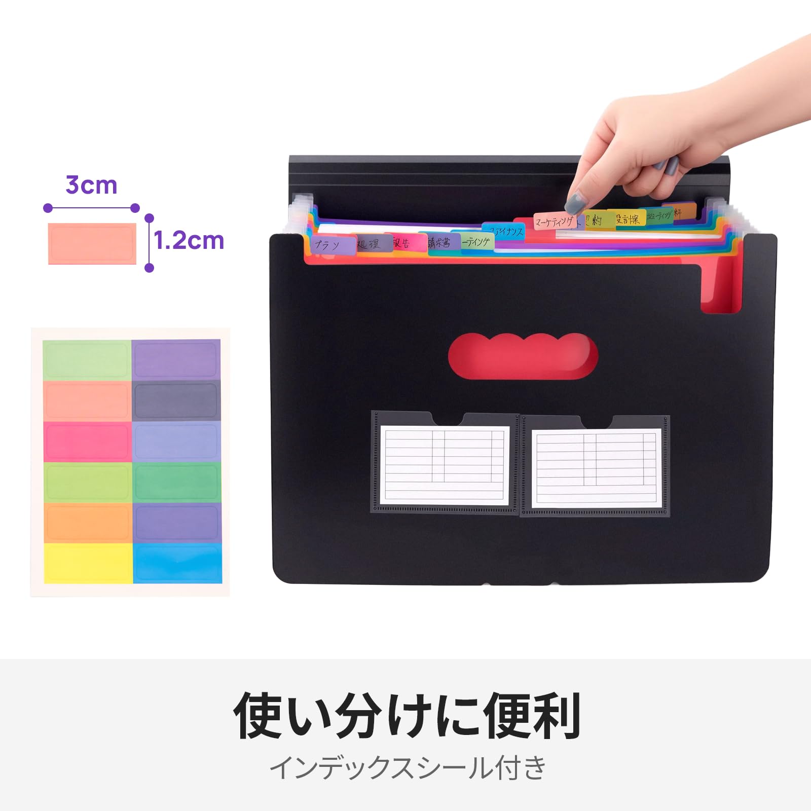 DY.2ten ドキュメントスタンド A4 13ポケット 2点セット ファイルボックス ドキュメントファイル 大容量 書類/ファイル 整理 収納 分類 便利 使いやすい 縦型 自立型 アコーディオン式 コンパクト 12仕切り 書類ケース 収納ボックス 黒 白 ペーパークリップ付き カラーラベル付き