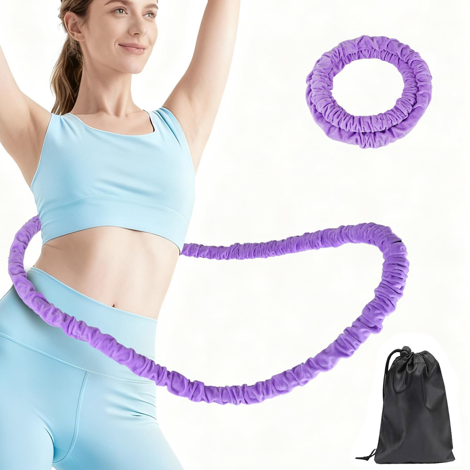 Bookwarm【2025新登場】0.9kg フラフープ ウェイト付き ベリー フィットネス PVCソフトスプリングフープ 折りたたみ式 ポータブル フラサークル 筋トレ (ウエスト・背中・脚・胸 エクササイズ) 室内/公園用 男女兼用