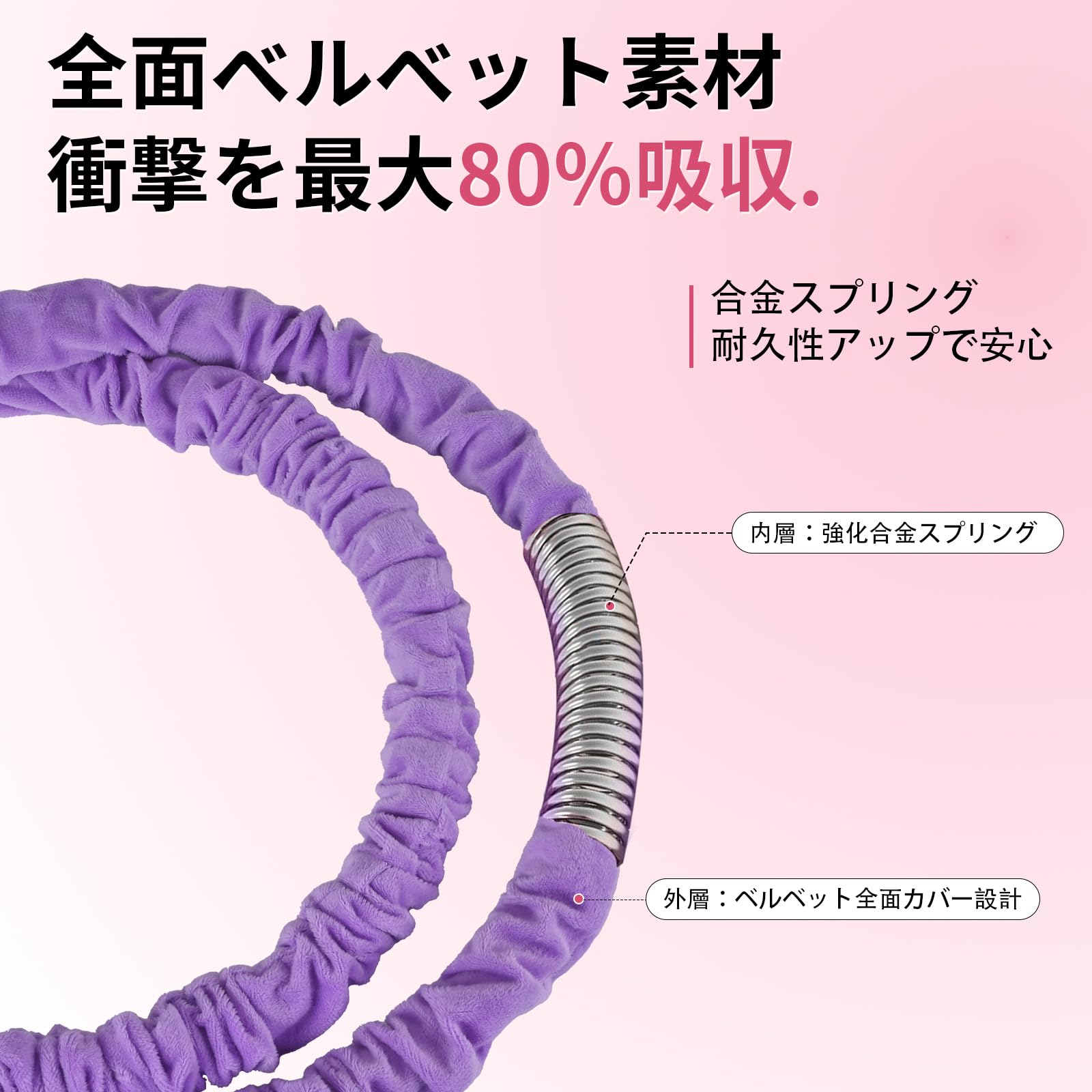 JetWave 静音設計 スプリングフラフープ 1.5kg 大人用 ソフト素材 落ちにくい 折りたたみ式 室内トレーニング 有酸素運動 フィットネス用