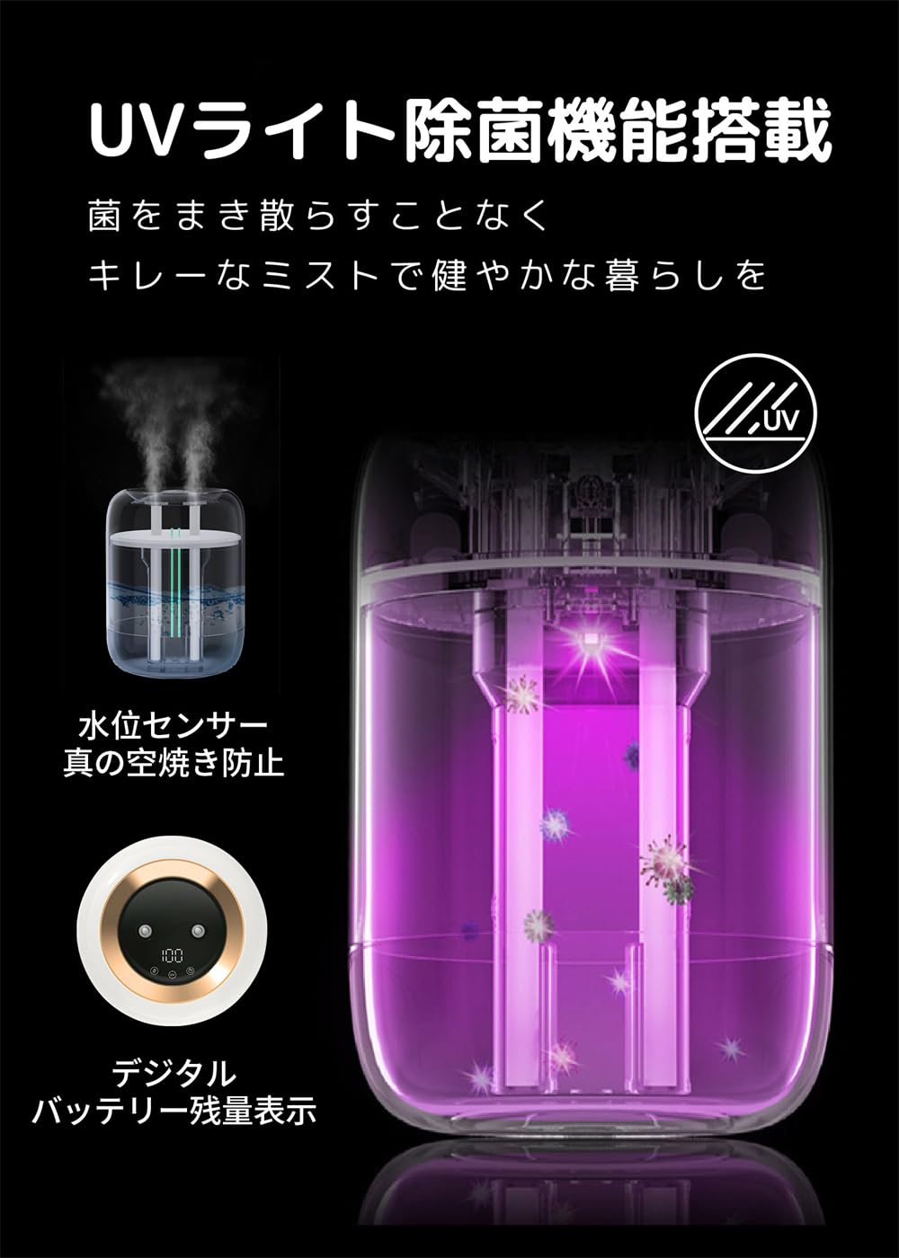 加湿器-卓上加湿器-小型加湿器-7色LEDライト-小型-超音波加湿器-usb給電式