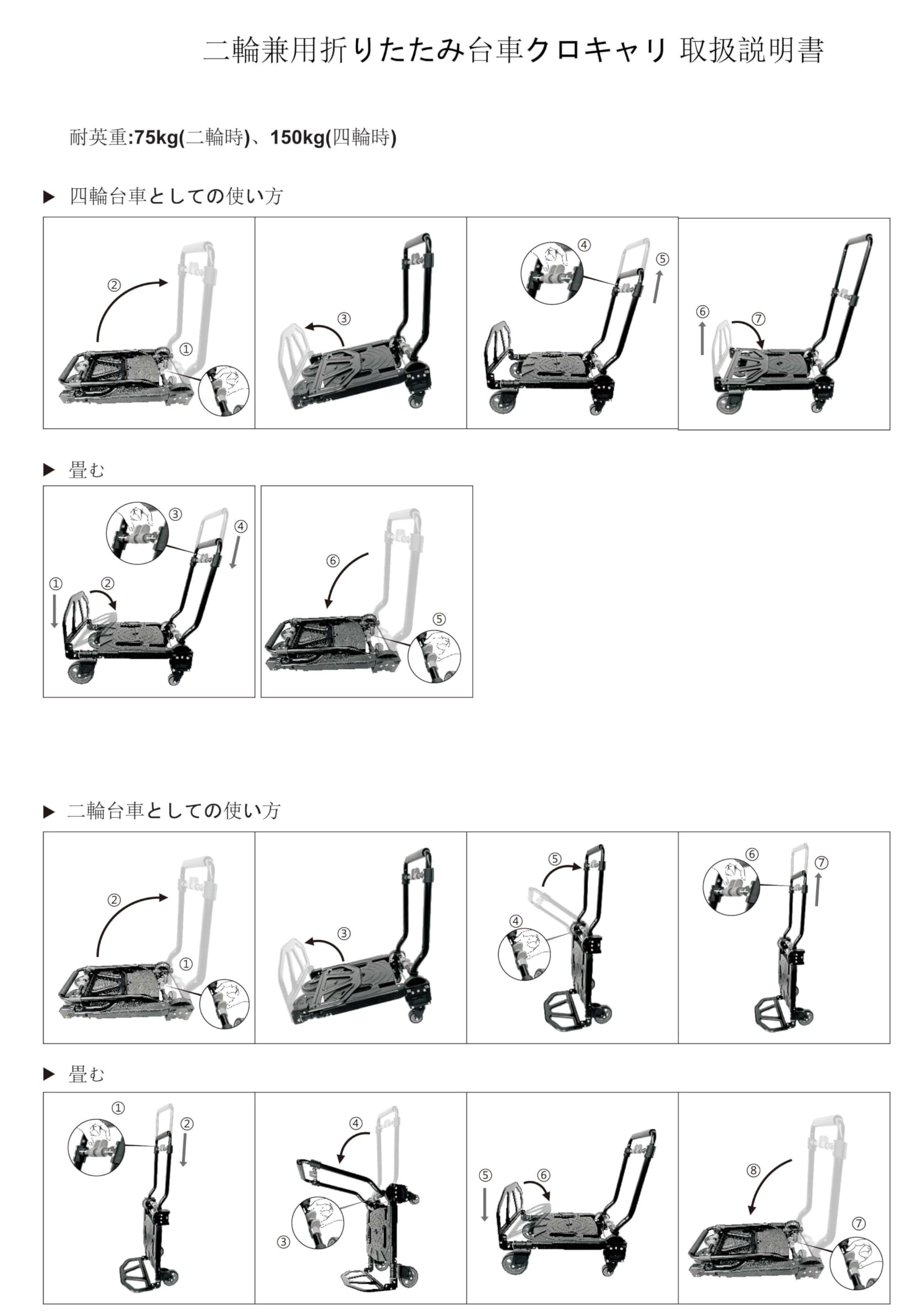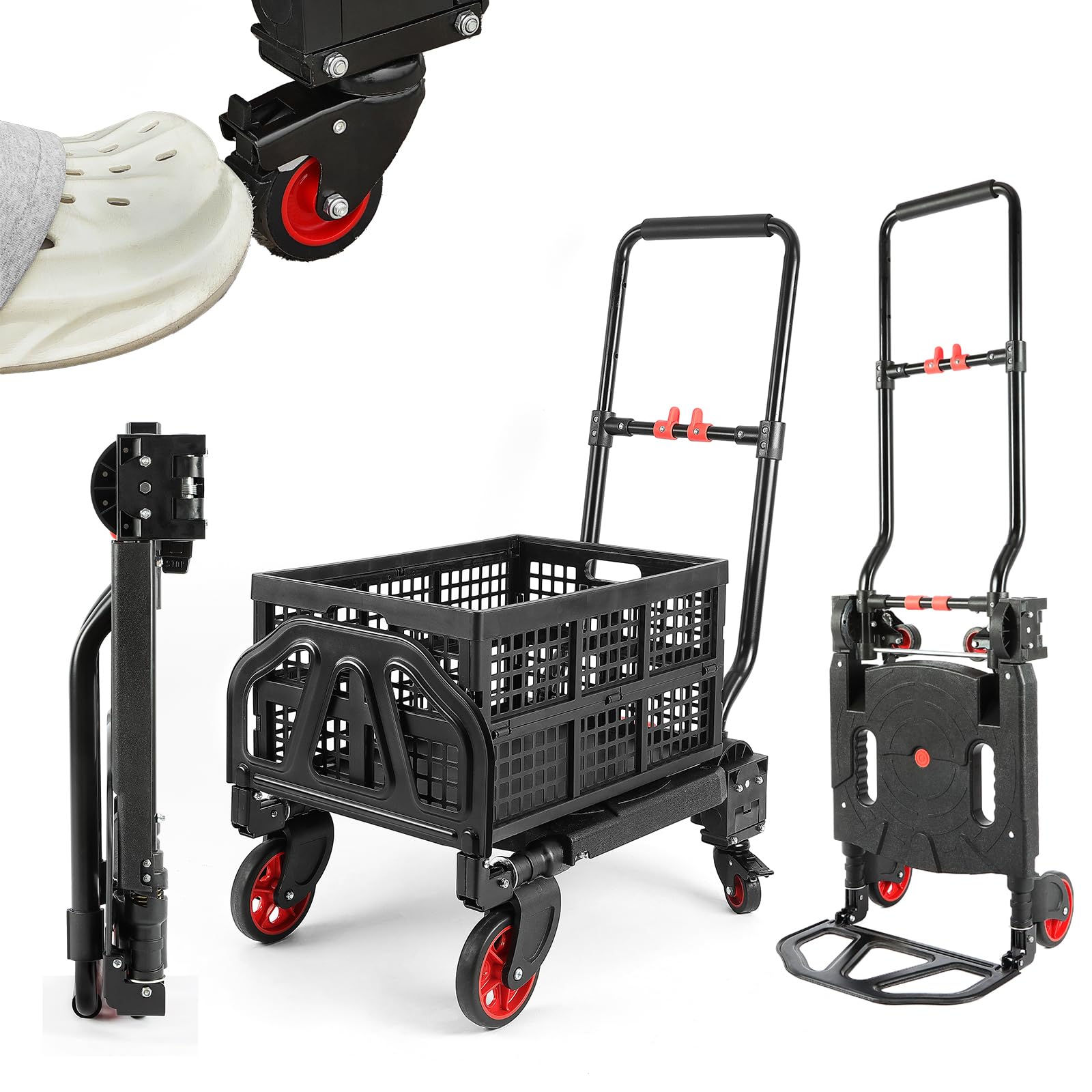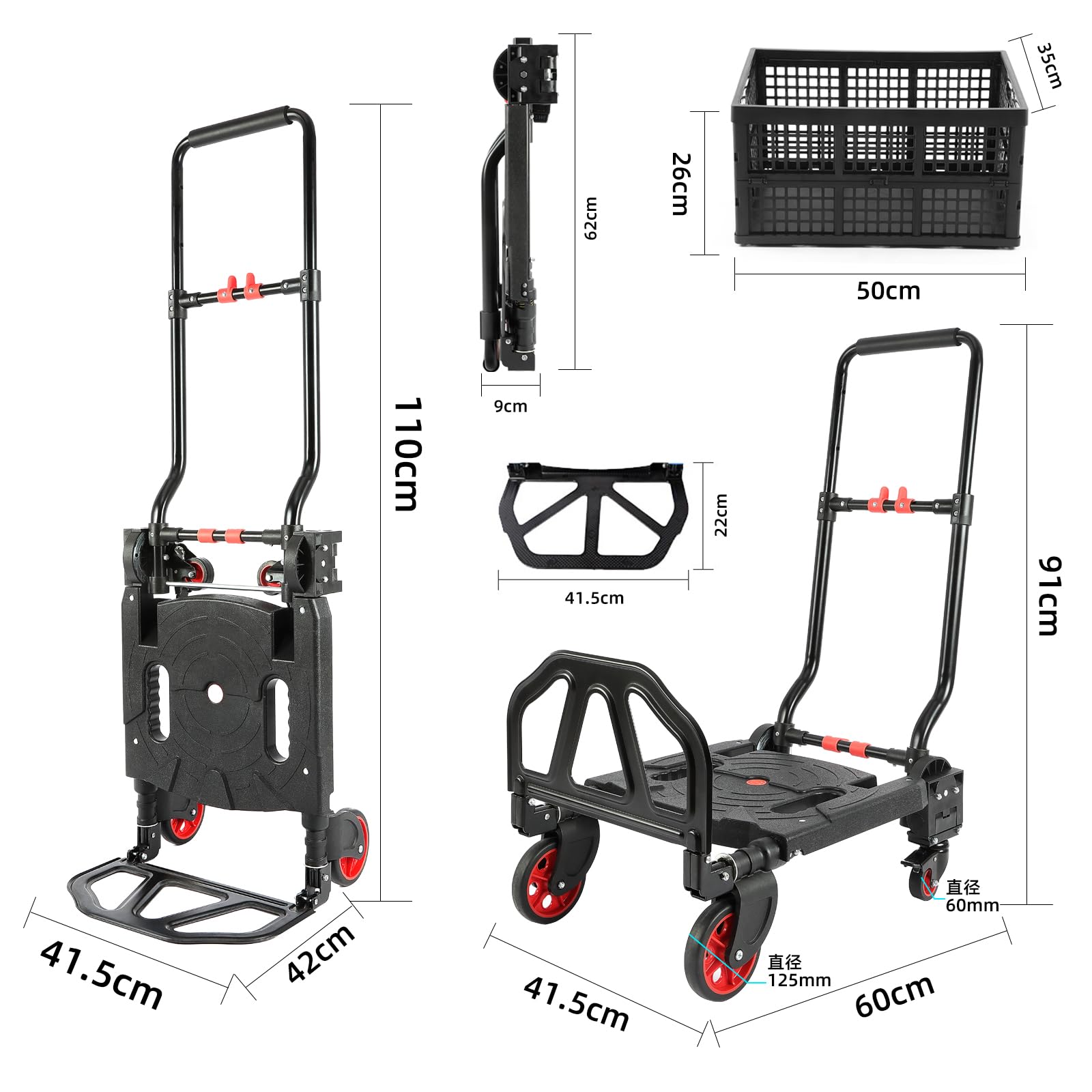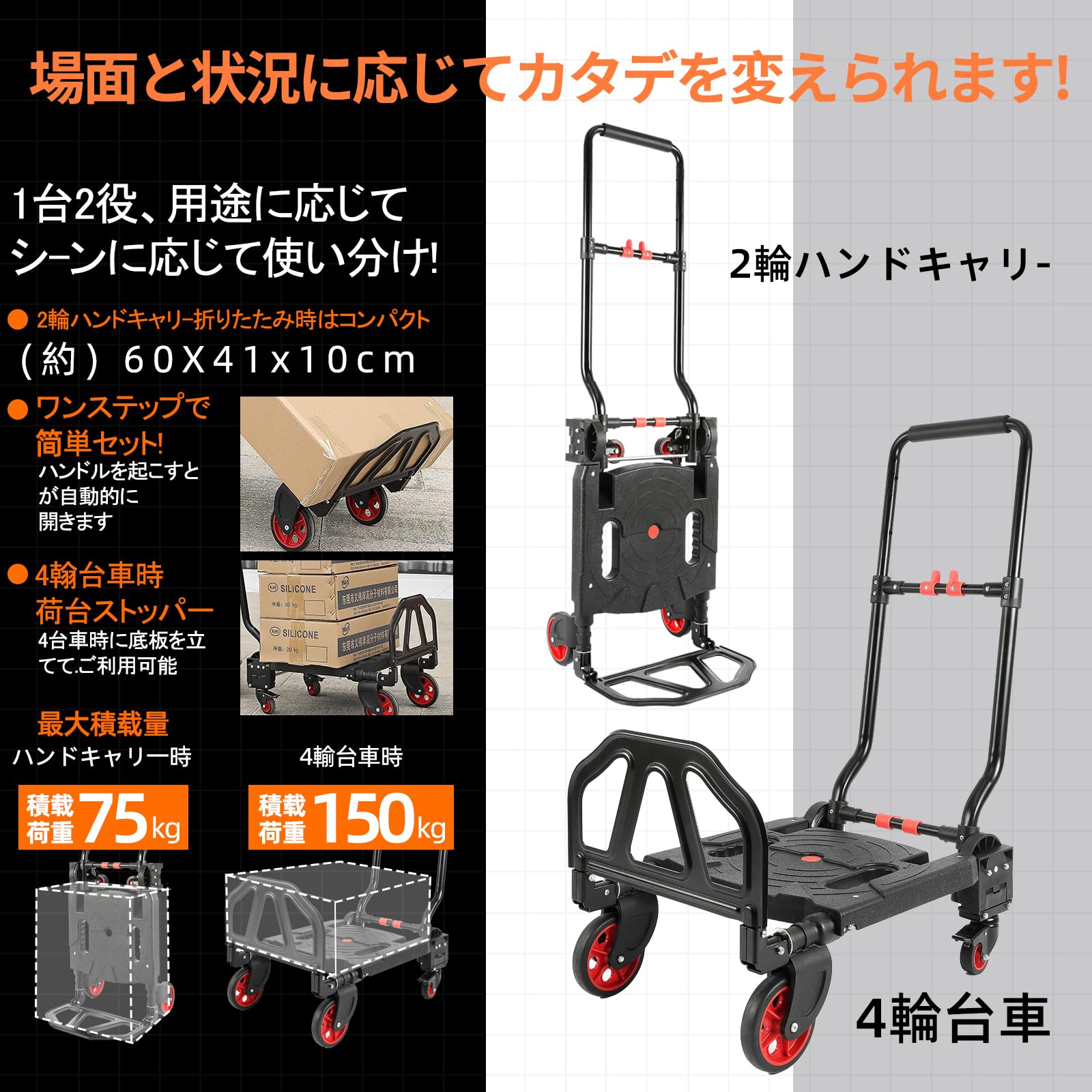 Hrelec 折りたたみ台車 手押し台車 静音台車 軽量 コンパクト ハンドル三段調節 自在輪付き(後輪) 耐荷重150KG スッキリ収納 滑り止め 買い物 引っ越し TPRホイール 持ち運び便利 家庭用 業務用