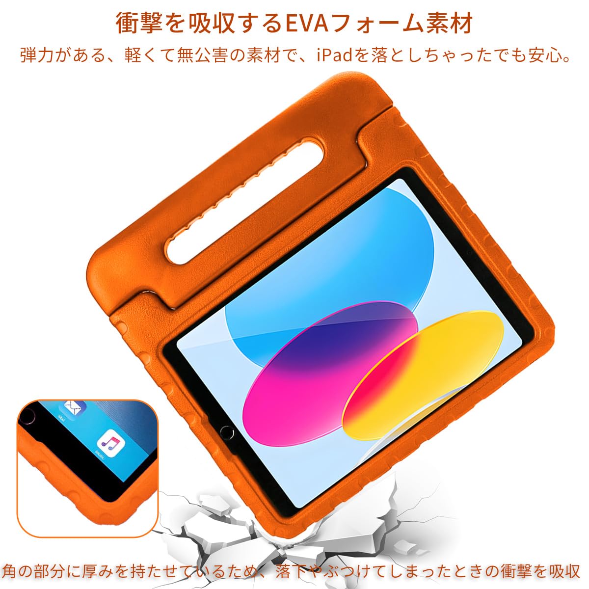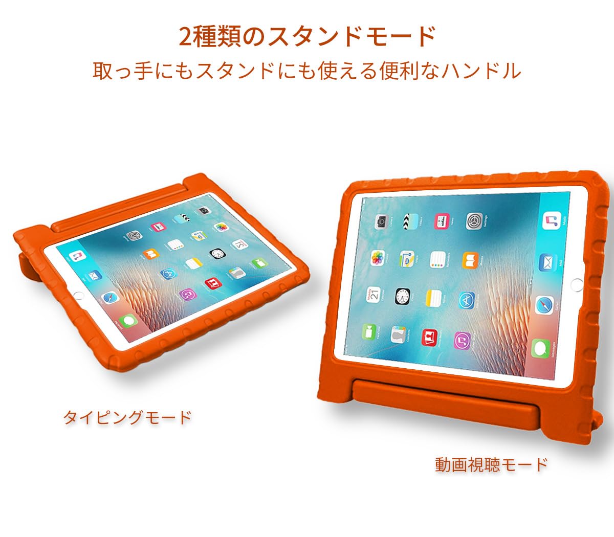 iPad 9世代 2021 8世代 2020 7世代 2019 10.2 インチ ケース iPad Air3 10.5インチ キッズケース ハンドル付き 超軽量 耐衝撃 スタンド機能 EVA キッズ 子ども用 カバー(オレンジ)